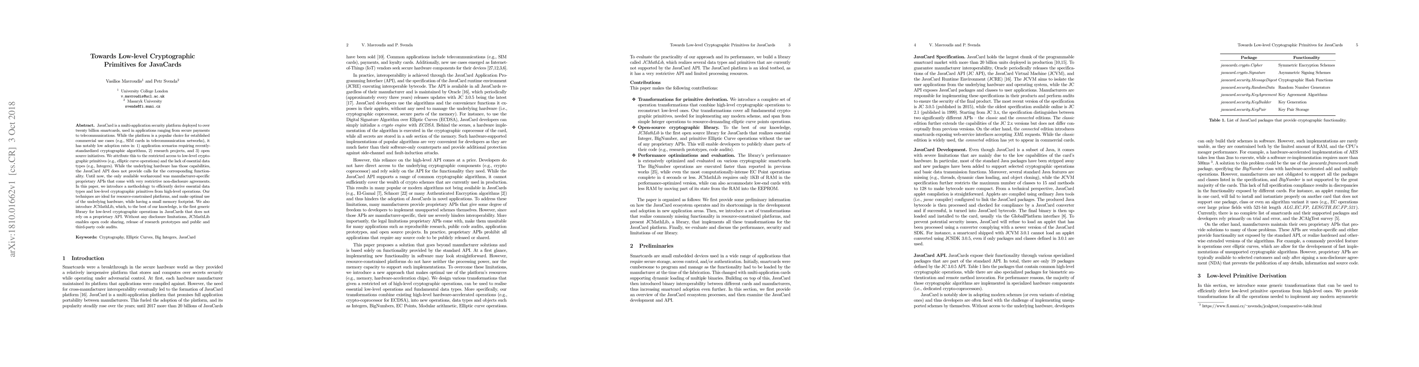 Researchers developed a method to create low-level cryptographic primitives for JavaCards, enabling open code sharing and research prototypes, which could improve adoption in resource-constrained platforms and applications.
