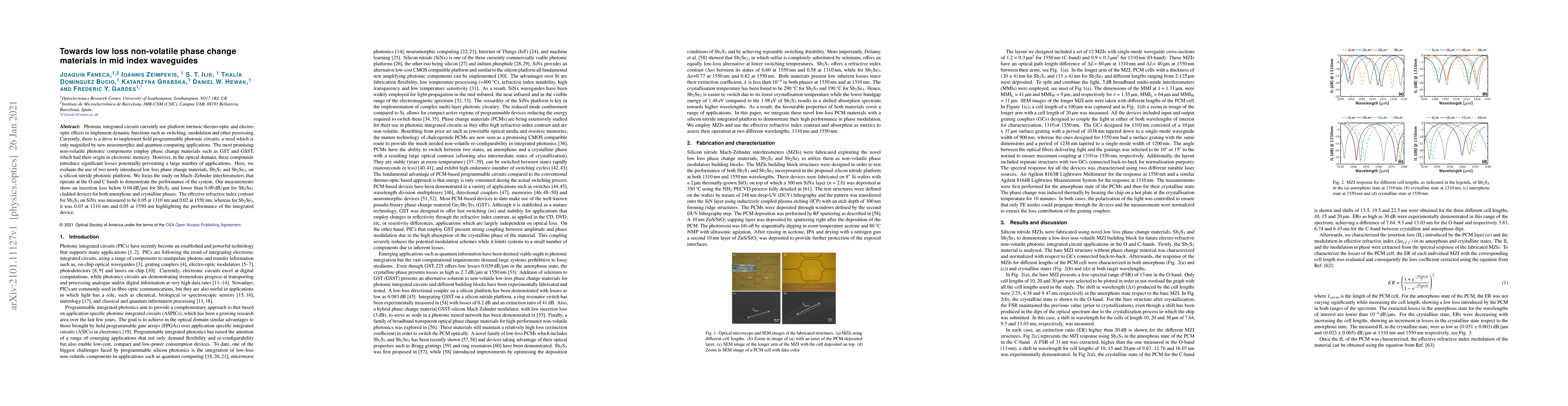 Photonic integrated circuits currently use platform intrinsic thermo-optic and electro-optic effects to implement dynamic functions such as switching, modulation and other processing. Currently, there is a drive to implement field programmable photonic circuits, a need which is only magnified by new neuromorphic and quantum computing applications. The most promising non-volatile photonic components employ phase change materials such as GST and GSST, which had their origin in electronic memory. However, in the optical domain, these compounds introduce significant losses potentially preventing a large number of applications. Here, we evaluate the use of two newly introduced low loss phase change materials, Sb2S3 and Sb2Se3, on a silicon nitride photonic platform. We focus the study on Mach-Zehnder interferometers that operate at the O and C bands to demonstrate the performance of the system. Our measurements show an insertion loss below 0.04 dB/um for Sb2S3 and lower than 0.09 dB/um for Sb2Se3 cladded devices for both amorphous and crystalline phases. The effective refractive index contrast for Sb2S3 on SiNx was measured to be 0.05 at 1310 nm and 0.02 at 1550 nm, whereas for Sb2Se3, it was 0.03 at 1310 nm and 0.05 at 1550 nm highlighting the performance of the integrated device.