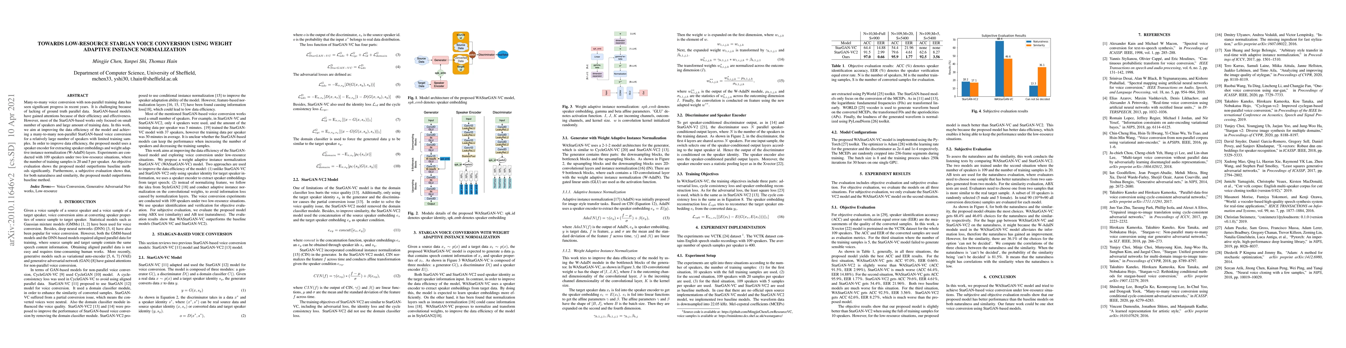 The novelty of this work lies in the application of weight adaptive instance normalization to StarGAN-based voice conversion models, specifically designed for low-resource situations with limited training samples.
