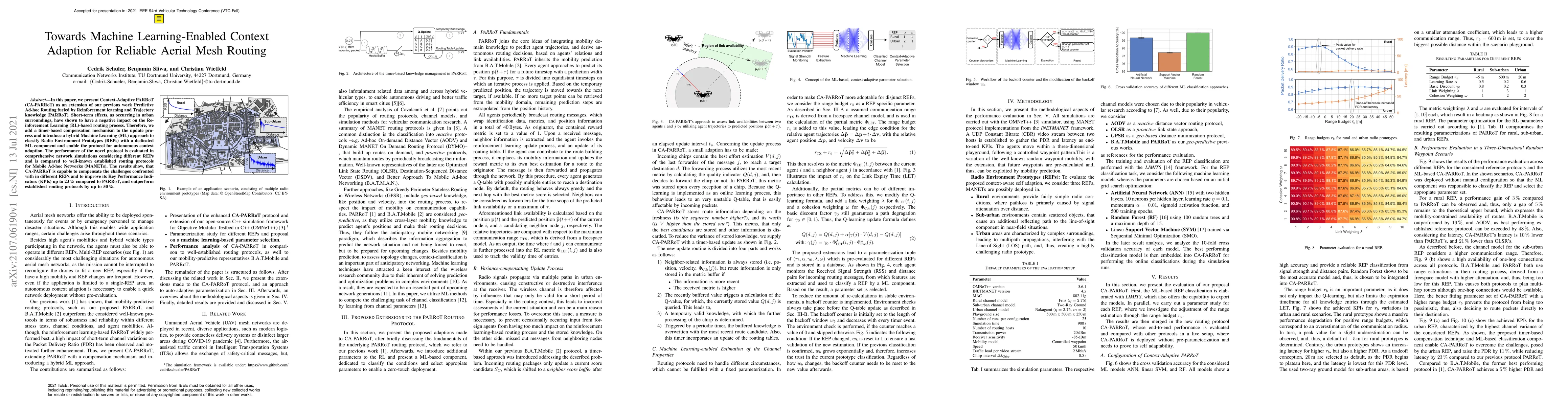 This paper introduces Context-Adaptive PARRoT (CA-PARRoT), an advanced routing protocol for aerial mesh networks that uses a hybrid Machine Learning approach to enhance context adaption and compensate for short-term urban effects. CA-PARRoT outperforms established MANET protocols by up to 50% in various scenarios.