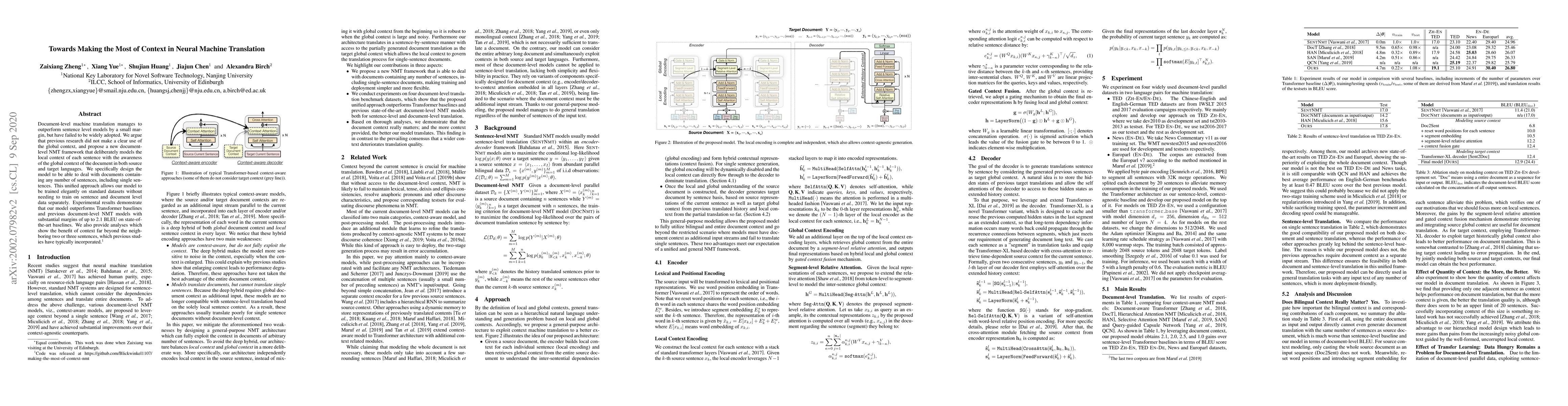 Document-level machine translation manages to outperform sentence level models by a small margin, but have failed to be widely adopted. We argue that previous research did not make a clear use of the global context, and propose a new document-level NMT framework that deliberately models the local context of each sentence with the awareness of the global context of the document in both source and target languages. We specifically design the model to be able to deal with documents containing any number of sentences, including single sentences. This unified approach allows our model to be trained elegantly on standard datasets without needing to train on sentence and document level data separately. Experimental results demonstrate that our model outperforms Transformer baselines and previous document-level NMT models with substantial margins of up to 2.1 BLEU on state-of-the-art baselines. We also provide analyses which show the benefit of context far beyond the neighboring two or three sentences, which previous studies have typically incorporated.