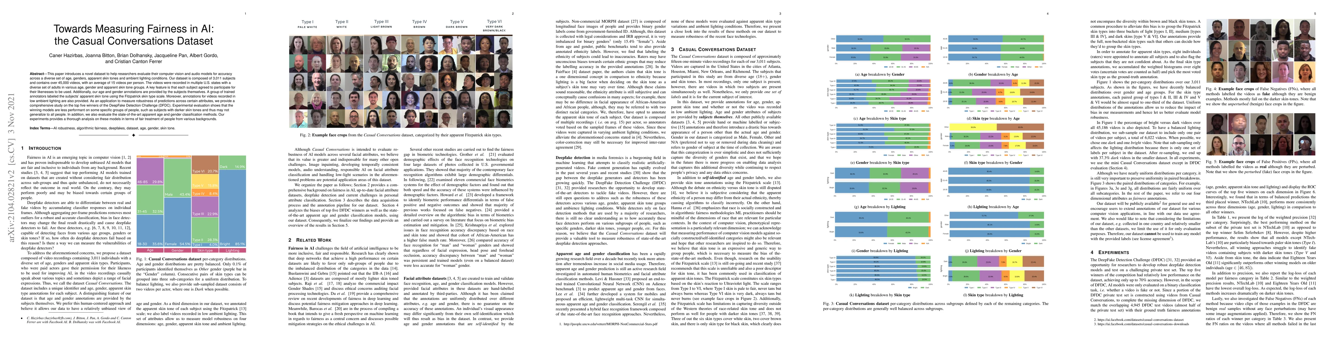 A new dataset aims to improve AI model fairness by capturing diverse age, gender, skin tone, and lighting conditions in videos. Experimental results show that winning models may not generalize well to certain groups of people, highlighting the need for more inclusive evaluations.