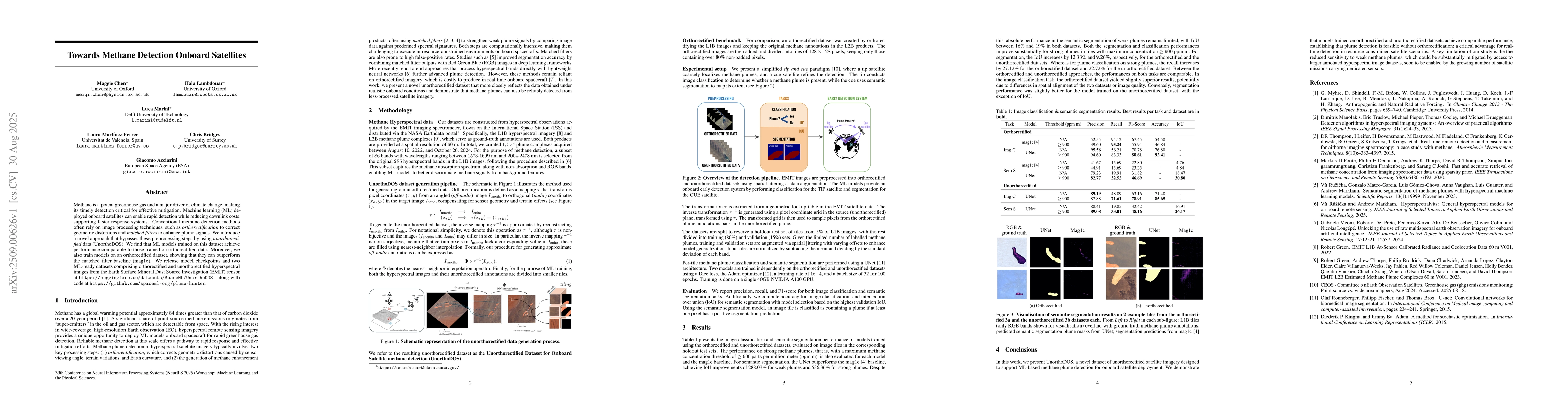 Methane is a potent greenhouse gas and a major driver of climate change, making its timely detection critical for effective mitigation. Machine learning (ML) deployed onboard satellites can enable rapid detection while reducing downlink costs, supporting faster response systems. Conventional methane detection methods often rely on image processing techniques, such as orthorectification to correct geometric distortions and matched filters to enhance plume signals. We introduce a novel approach that bypasses these preprocessing steps by using \textit{unorthorectified} data (UnorthoDOS). We find that ML models trained on this dataset achieve performance comparable to those trained on orthorectified data. Moreover, we also train models on an orthorectified dataset, showing that they can outperform the matched filter baseline (mag1c). We release model checkpoints and two ML-ready datasets comprising orthorectified and unorthorectified hyperspectral images from the Earth Surface Mineral Dust Source Investigation (EMIT) sensor at https://huggingface.co/datasets/SpaceML/UnorthoDOS , along with code at https://github.com/spaceml-org/plume-hunter.