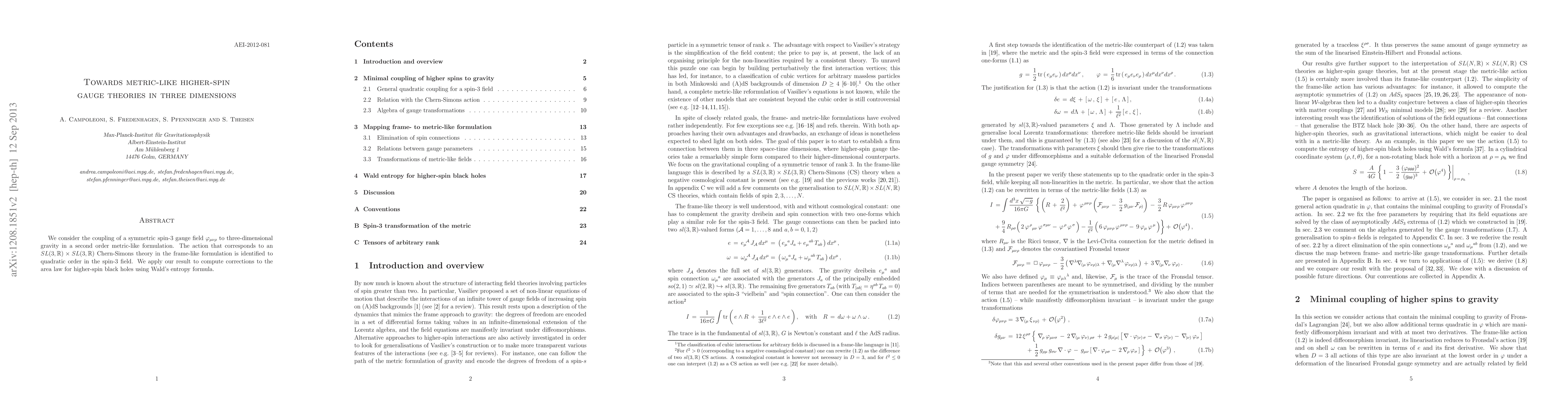 This paper identifies the action for a spin-3 gauge field coupled to three-dimensional gravity in a metric-like formulation, focusing on an SL(3,R) x SL(3,R) Chern-Simons theory. It computes corrections to the area law for higher-spin black holes using Wald's entropy formula.