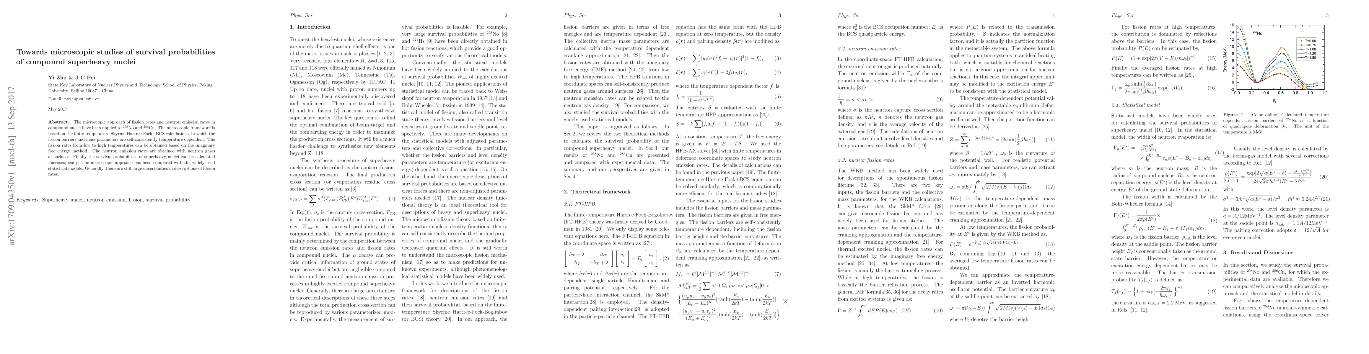 The microscopic approach of fission rates and neutron emission rates in compound nuclei have been applied to $^{258}$No and $^{286}$Cn. The microscopic framework is based on the finite-temperature Skyrme-Hartree-Fock+BCS calculations, in which the fission barriers and mass parameters are self-consistently temperature dependent. The fission rates from low to high temperatures can be obtained based on the imaginary free energy method. The neutron emission rates are obtained with neutron gases at surfaces. Finally the survival probabilities of superheavy nuclei can be calculated microscopically. The microscopic approach has been compared with the widely used statistical models. Generally, there are still large uncertainties in descriptions of fission rates.