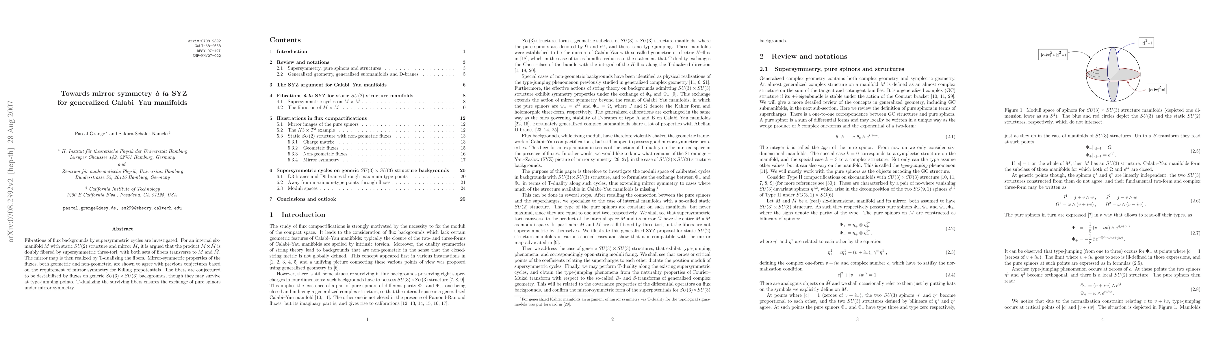 Fibrations of flux backgrounds by supersymmetric cycles are investigated. For an internal six-manifold M with static SU(2) structure and mirror \hat{M}, it is argued that the product M x \hat{M} is doubly fibered by supersymmetric three-tori, with both sets of fibers transverse to M and \hat{M}. The mirror map is then realized by T-dualizing the fibers. Mirror-symmetric properties of the fluxes, both geometric and non-geometric, are shown to agree with previous conjectures based on the requirement of mirror symmetry for Killing prepotentials. The fibers are conjectured to be destabilized by fluxes on generic SU(3)xSU(3) backgrounds, though they may survive at type-jumping points. T-dualizing the surviving fibers ensures the exchange of pure spinors under mirror symmetry.