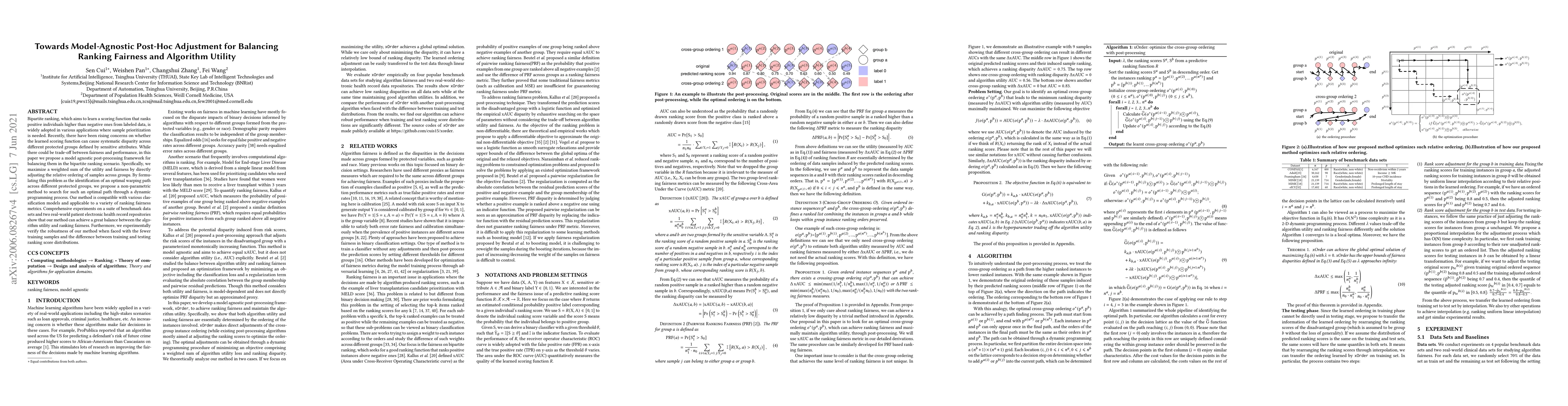 This paper proposes a model-agnostic post-hoc adjustment framework to balance ranking fairness and algorithm utility in bipartite ranking tasks. It uses a dynamic programming approach to find an optimal warping path that maximizes a weighted sum of utility and fairness across protected groups.
