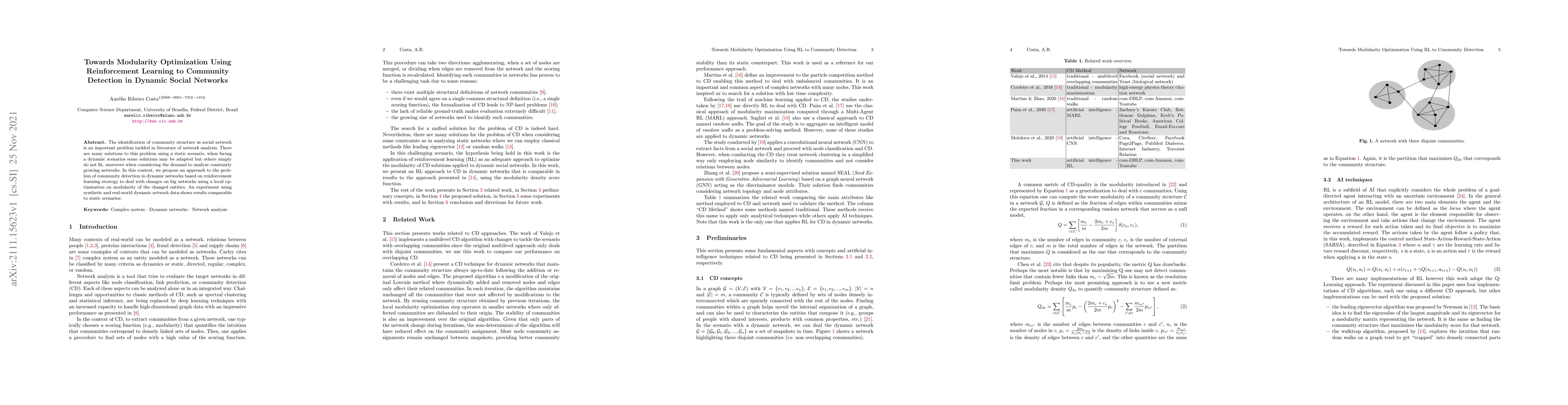 This paper proposes a reinforcement learning approach for optimizing modularity in community detection within dynamic social networks, demonstrating comparable results to static methods using both synthetic and real-world data. The method focuses on local optimization of modularity scores to adapt to network changes.