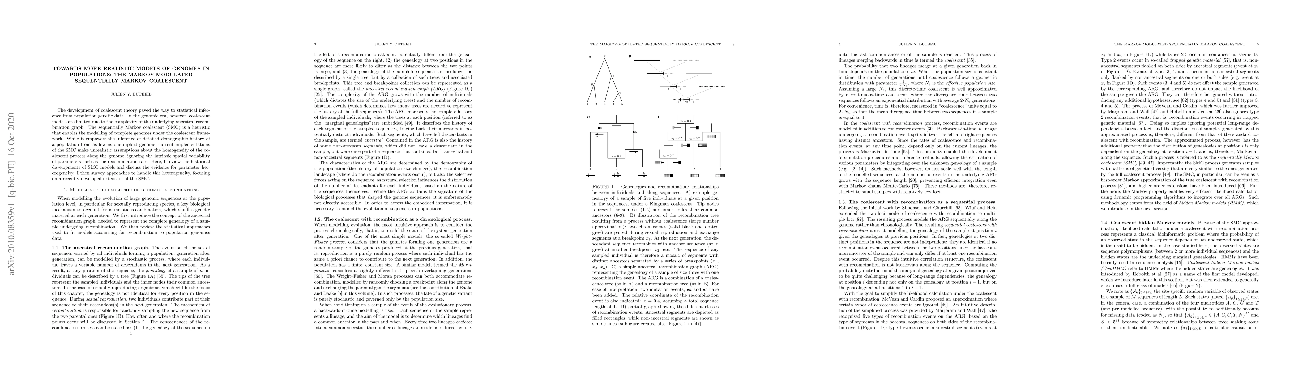 This paper reviews the evolution of the sequentially Markov coalescent (SMC) model for analyzing population genetic data and highlights its limitations due to assumptions of parameter homogeneity. It proposes a new Markov-modulated SMC model to better account for spatial variability in parameters like recombination rates, thus offering a more realistic representation of genome evolution in populations.