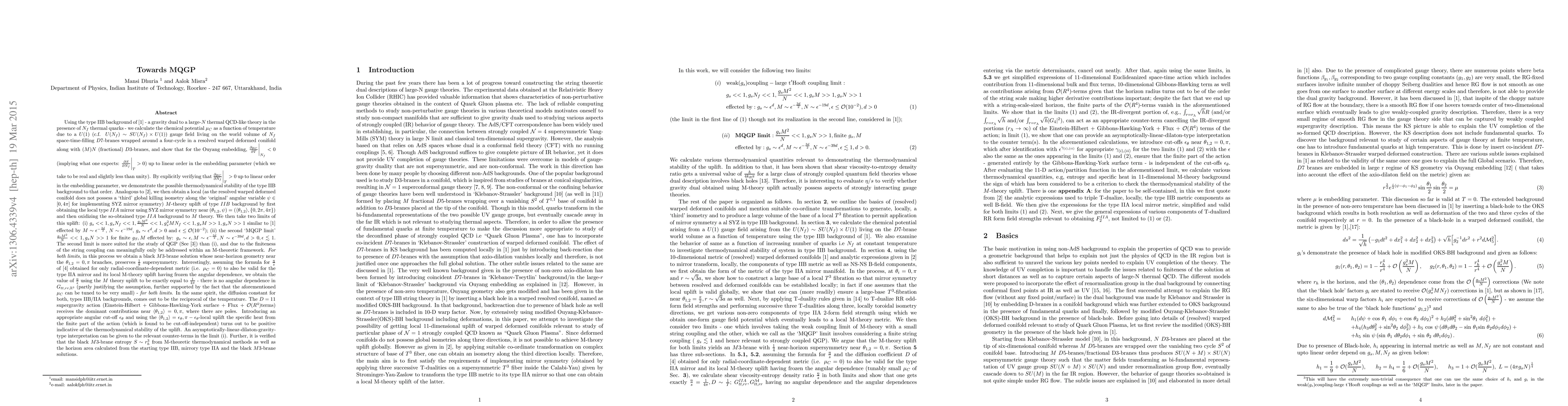 study of QGP (See [3]) and can only be addressed in M theory. The uplift gives
