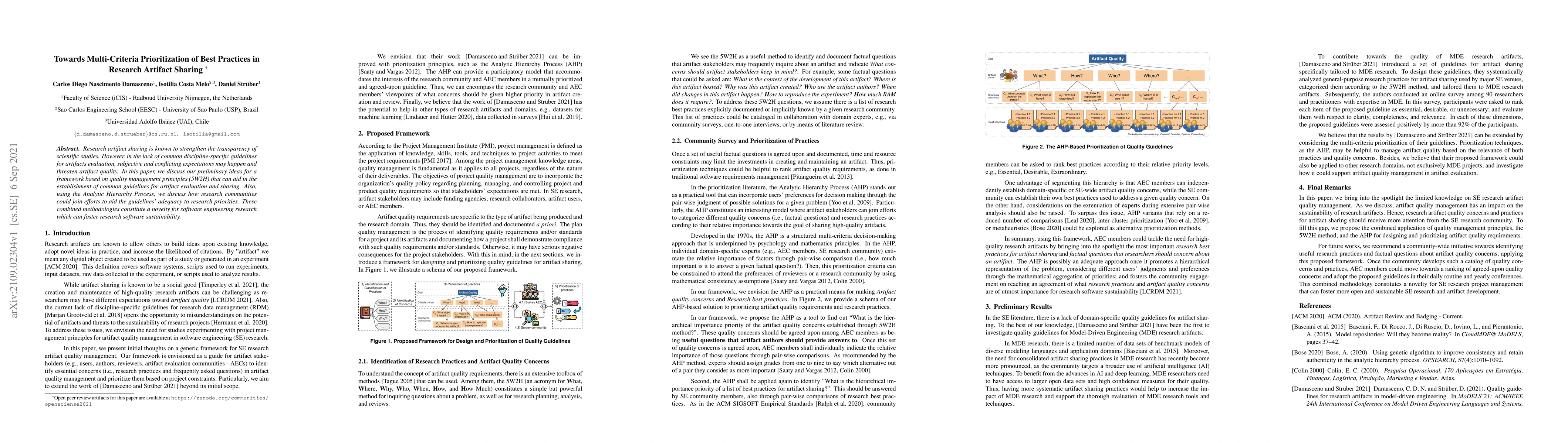 Research artifact sharing is known to strengthen the transparency of scientific studies. However, in the lack of common discipline-specific guidelines for artifacts evaluation, subjective and conflicting expectations may happen and threaten artifact quality. In this paper, we discuss our preliminary ideas for a framework based on quality management principles (5W2H) that can aid in the establishment of common guidelines for artifact evaluation and sharing. Also, using the Analytic Hierarchy Process, we discuss how research communities could join efforts to aid the guidelines' adequacy to research priorities. These combined methodologies constitute a novelty for software engineering research which can foster research software sustainability.