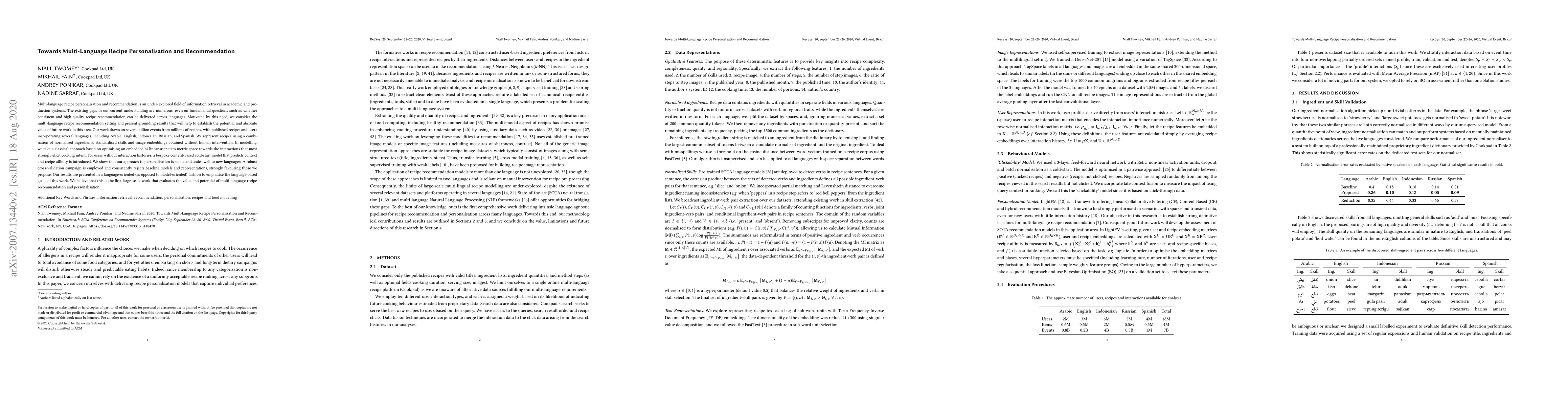 This paper explores multi-language recipe recommendation and personalisation, leveraging billions of events from diverse languages. It proposes scalable models and demonstrates their effectiveness through cross-validation, showing consistent performance across languages and outperforming baseline models.