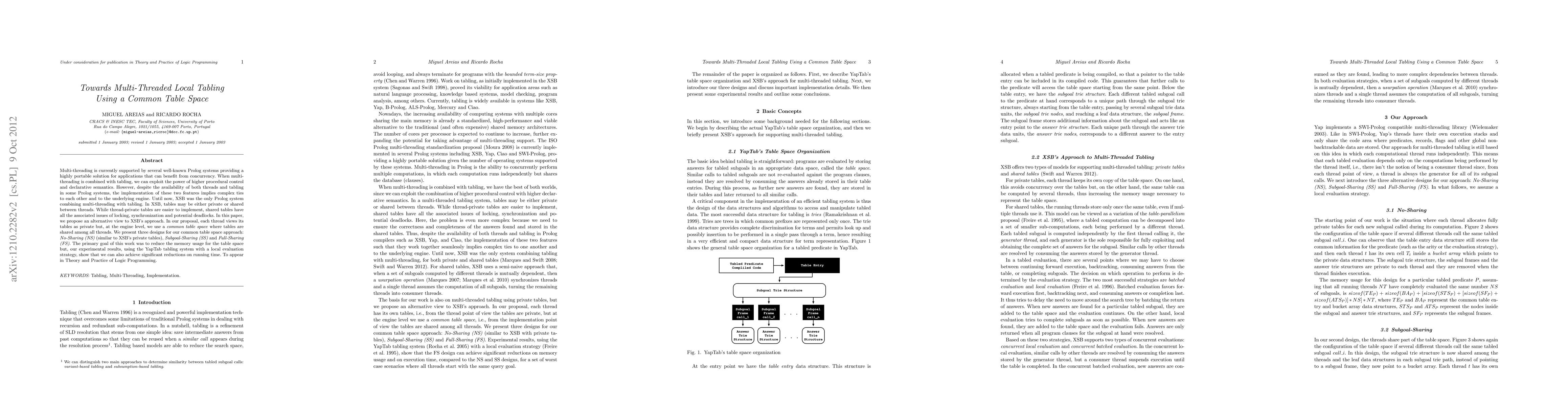 This paper proposes a new approach to multi-threaded local tabling in Prolog systems, reducing memory usage while maintaining performance gains.