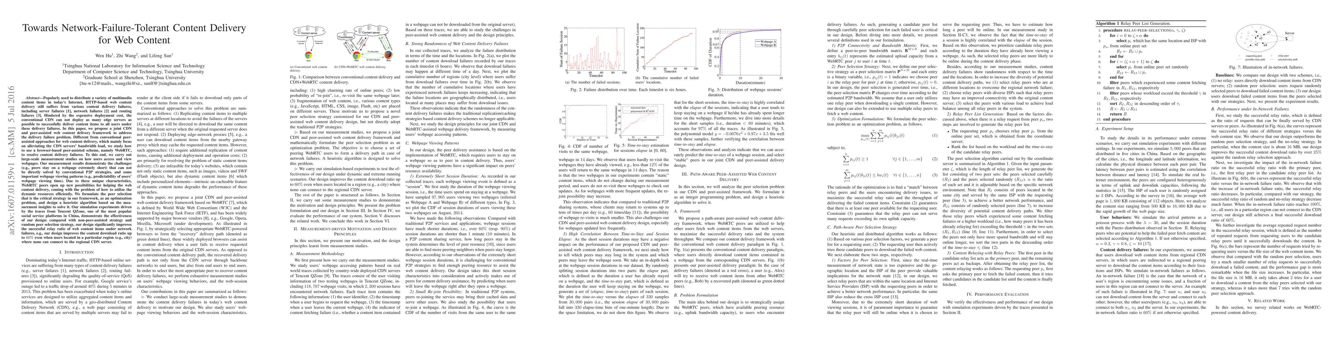 This paper proposes a joint CDN and peer-assisted framework using WebRTC to enhance web content delivery under network failures. It formulates peer selection as an optimization problem and demonstrates significant improvements in content delivery success rates, up to 60%, through simulations based on Tencent QZone traces.