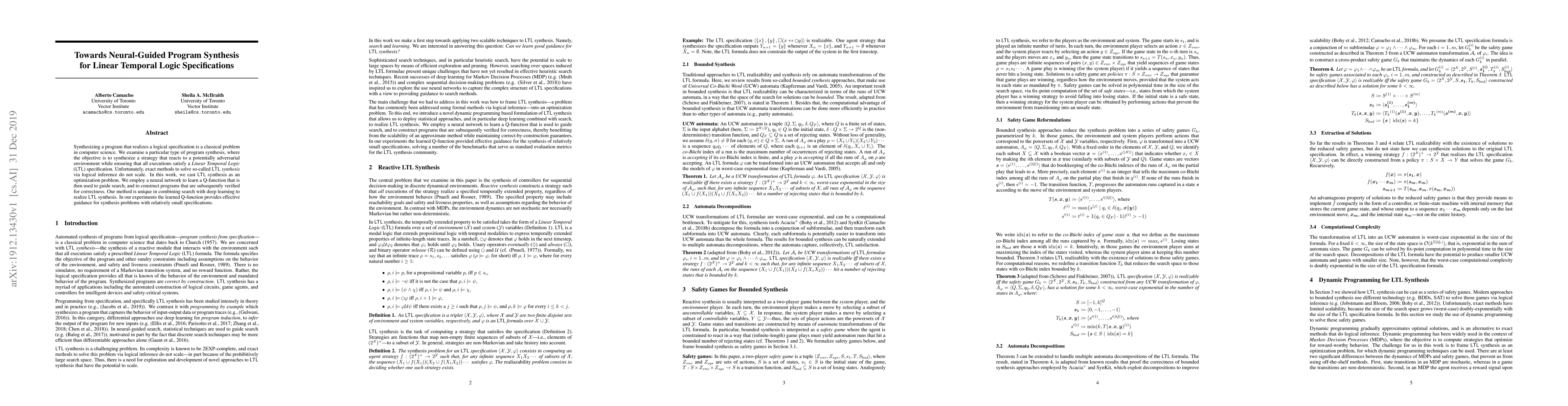 This research proposes a neural-guided approach for synthesizing programs that adhere to Linear Temporal Logic (LTL) specifications, using a neural network to optimize and guide the synthesis process. The method successfully constructs programs that meet LTL criteria, demonstrating effectiveness on smaller synthesis problems.