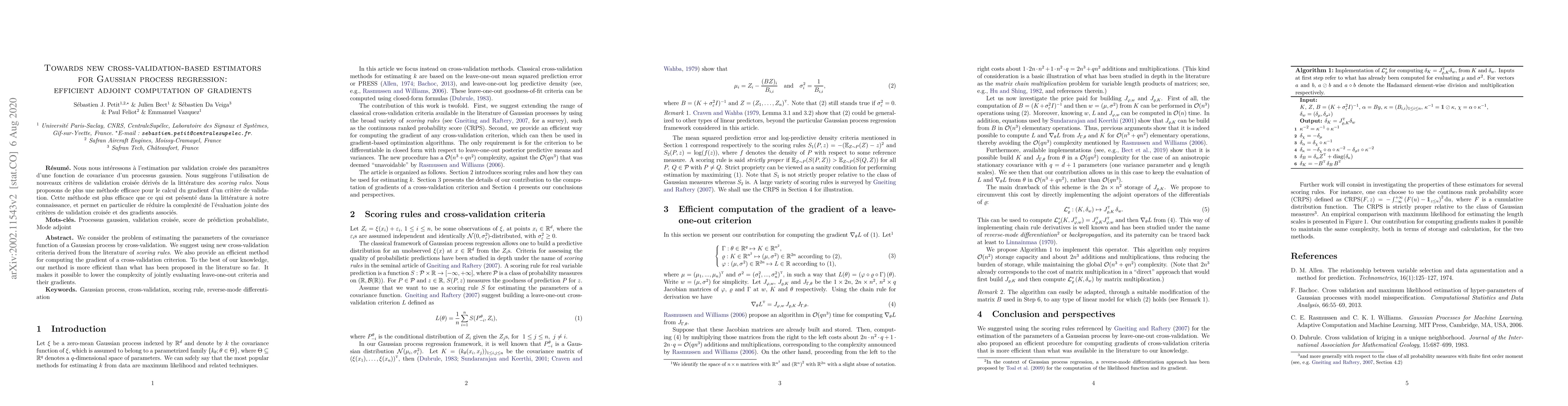 This paper proposes new cross-validation criteria for estimating Gaussian process regression parameters, derived from scoring rules, and presents an efficient adjoint computation method for gradient evaluation, which is more efficient than existing methods and reduces the complexity of leave-one-out criteria evaluation.