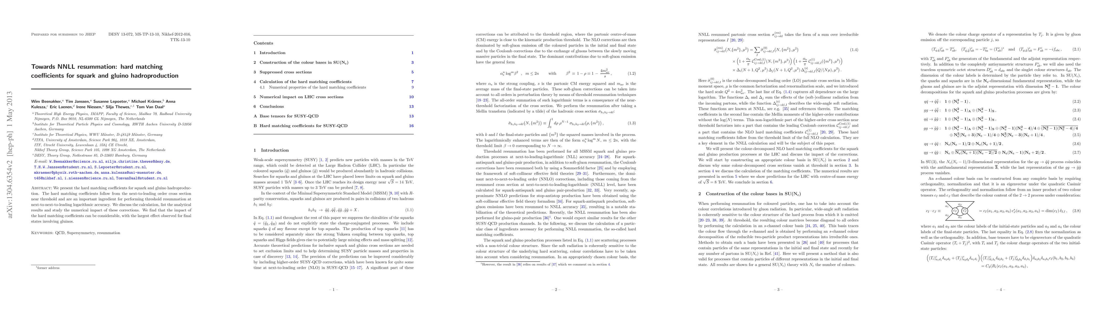 This paper presents hard matching coefficients for squark and gluino hadroproduction derived from next-to-leading order cross sections near threshold, crucial for next-to-next-to-leading logarithmic (NNLL) resummation accuracy. The study finds significant numerical impact, especially for gluino final states.