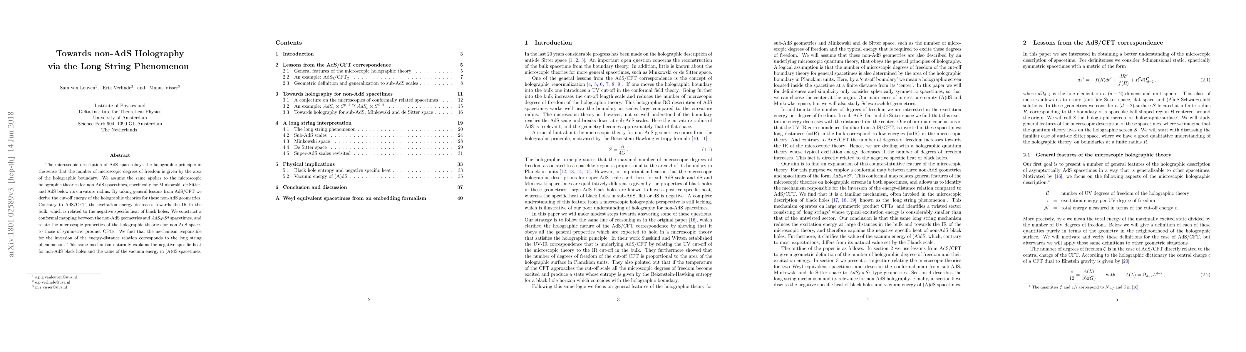 The paper proposes a holographic principle for non-AdS spacetimes, including Minkowski and de Sitter, by drawing lessons from AdS/CFT. It introduces a conformal mapping to AdS_3×S^q and relates non-AdS holographic theories to symmetric product CFTs. The mechanism behind the inverted energy-distance relation is linked to the long string phenomenon, explaining negative specific heat for non-AdS black holes and vacuum energy in (A)dS spacetimes.