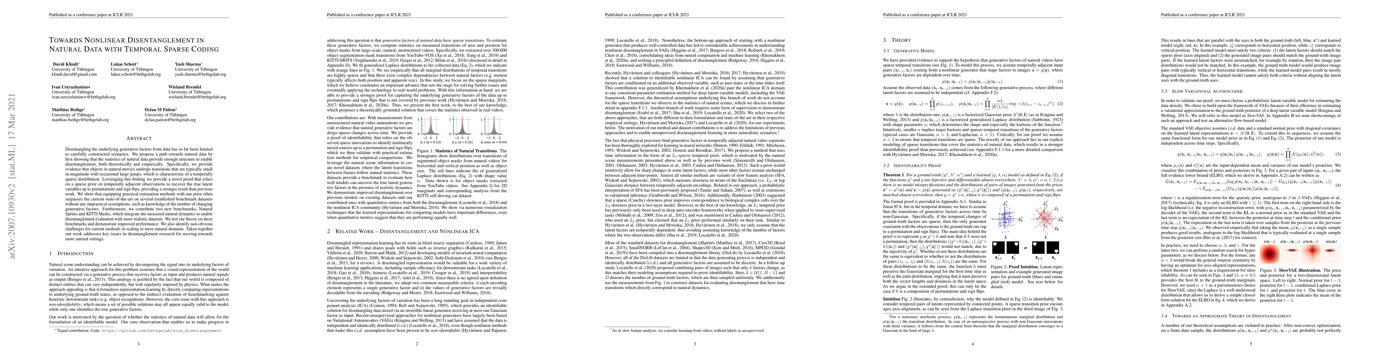 We construct an unsupervised learning model that achieves nonlinear disentanglement of underlying factors of variation in naturalistic videos. Previous work suggests that representations can be disentangled if all but a few factors in the environment stay constant at any point in time. As a result, algorithms proposed for this problem have only been tested on carefully constructed datasets with this exact property, leaving it unclear whether they will transfer to natural scenes. Here we provide evidence that objects in segmented natural movies undergo transitions that are typically small in magnitude with occasional large jumps, which is characteristic of a temporally sparse distribution. We leverage this finding and present SlowVAE, a model for unsupervised representation learning that uses a sparse prior on temporally adjacent observations to disentangle generative factors without any assumptions on the number of changing factors. We provide a proof of identifiability and show that the model reliably learns disentangled representations on several established benchmark datasets, often surpassing the current state-of-the-art. We additionally demonstrate transferability towards video datasets with natural dynamics, Natural Sprites and KITTI Masks, which we contribute as benchmarks for guiding disentanglement research towards more natural data domains.