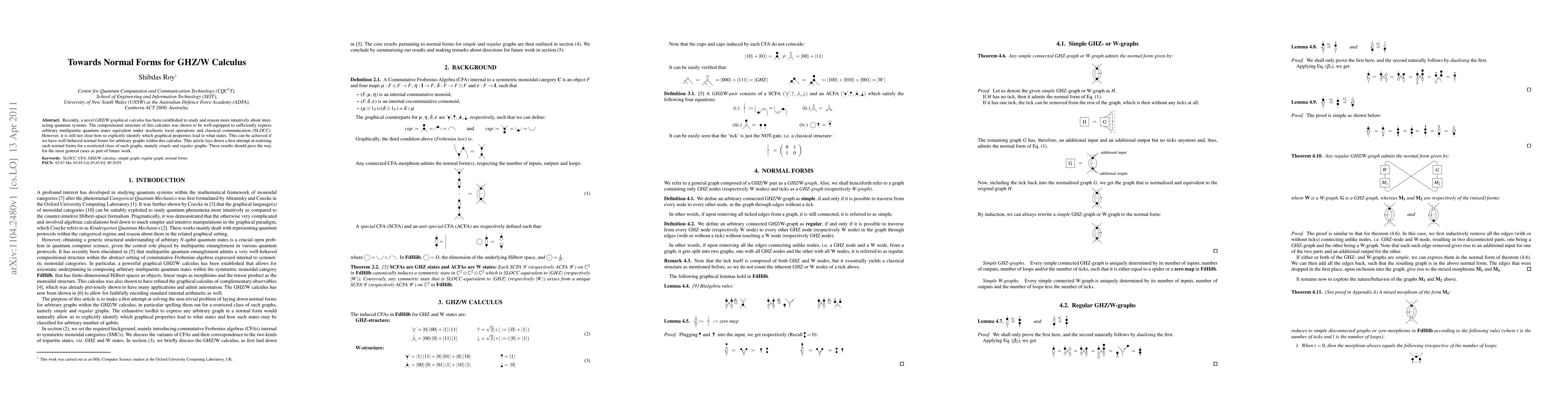 Recently, a novel GHZ/W graphical calculus has been established to study and reason more intuitively about interacting quantum systems. The compositional structure of this calculus was shown to be well-equipped to sufficiently express arbitrary mutlipartite quantum states equivalent under stochastic local operations and classical communication (SLOCC). However, it is still not clear how to explicitly identify which graphical properties lead to what states. This can be achieved if we have well-behaved normal forms for arbitrary graphs within this calculus. This article lays down a first attempt at realizing such normal forms for a restricted class of such graphs, namely simple and regular graphs. These results should pave the way for the most general cases as part of future work.