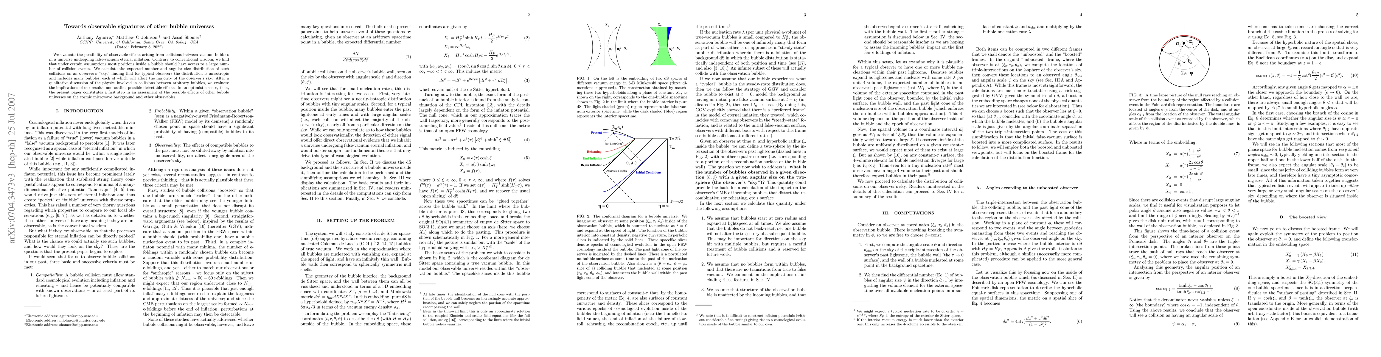 Researchers find that collisions between bubble universes could produce observable effects on our cosmic microwave background and sky, suggesting a first step towards detecting other bubble universes.