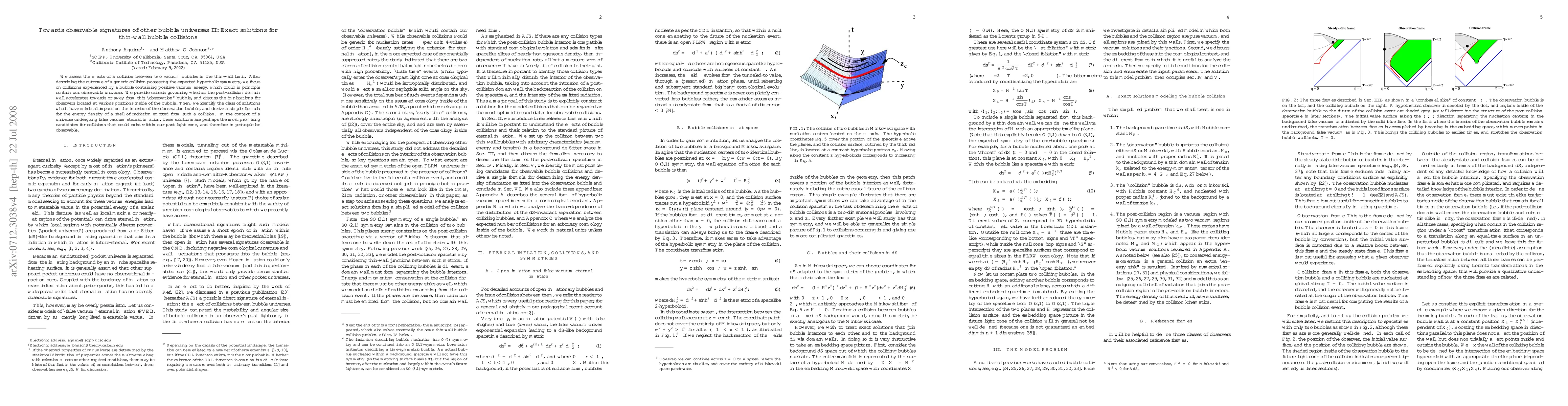 We assess the effects of a collision between two vacuum bubbles in the thin-wall limit. After describing the outcome of a generic collision possessing the expected hyperbolic symmetry, we focus on collisions experienced by a bubble containing positive vacuum energy, which could in principle contain our observable universe. We provide criteria governing whether the post-collision domain wall accelerates towards or away from this "observation" bubble, and discuss the implications for observers located at various positions inside of the bubble. Then, we identify the class of solutions which have minimal impact on the interior of the observation bubble, and derive a simple formula for the energy density of a shell of radiation emitted from such a collision. In the context of a universe undergoing false vacuum eternal inflation, these solutions are perhaps the most promising candidates for collisions that could exist within our past light cone, and therefore in principle be observable.