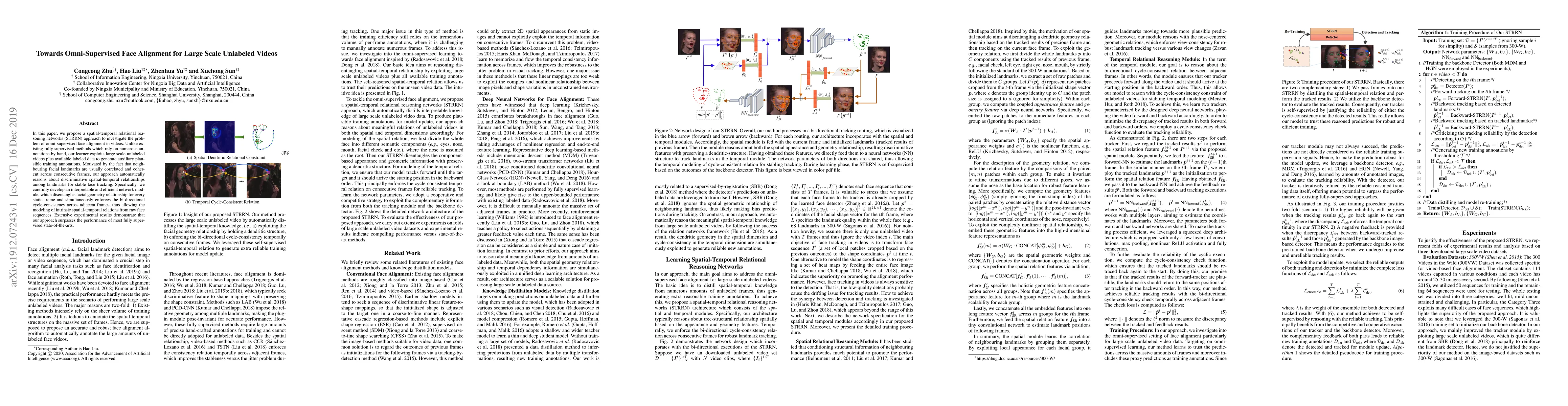 The paper proposes Spatial-Temporal Relational Reasoning Networks (STRRN) for omni-supervised face alignment in large-scale unlabeled videos. STRRN processes bi-directional tracking routing, incorporating spatial and temporal modules. The spatial module disentangles dendritic geometry relationships, while the temporal module enforces bi-directional cycle-consistency across frames.