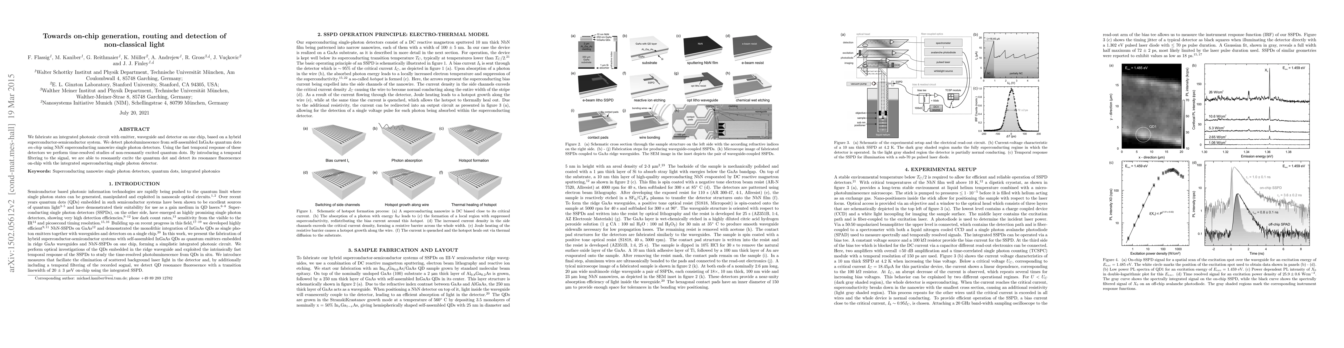 This research develops an integrated photonic circuit combining emitter, waveguide, and detector on a single chip using a hybrid superconductor-semiconductor system. It employs NbN superconducting nanowire single photon detectors to detect photoluminescence from InGaAs quantum dots, enabling on-chip generation, routing, and detection of non-classical light through time-resolved and resonant excitation studies.
