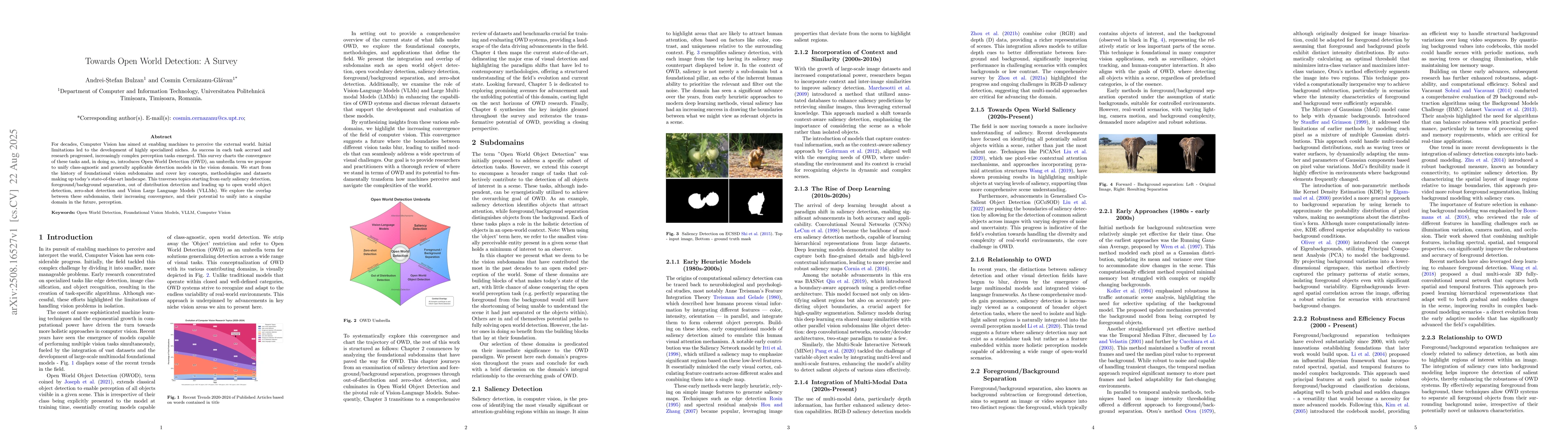 For decades, Computer Vision has aimed at enabling machines to perceive the external world. Initial limitations led to the development of highly specialized niches. As success in each task accrued and research progressed, increasingly complex perception tasks emerged. This survey charts the convergence of these tasks and, in doing so, introduces Open World Detection (OWD), an umbrella term we propose to unify class-agnostic and generally applicable detection models in the vision domain. We start from the history of foundational vision subdomains and cover key concepts, methodologies and datasets making up today's state-of-the-art landscape. This traverses topics starting from early saliency detection, foreground/background separation, out of distribution detection and leading up to open world object detection, zero-shot detection and Vision Large Language Models (VLLMs). We explore the overlap between these subdomains, their increasing convergence, and their potential to unify into a singular domain in the future, perception.
