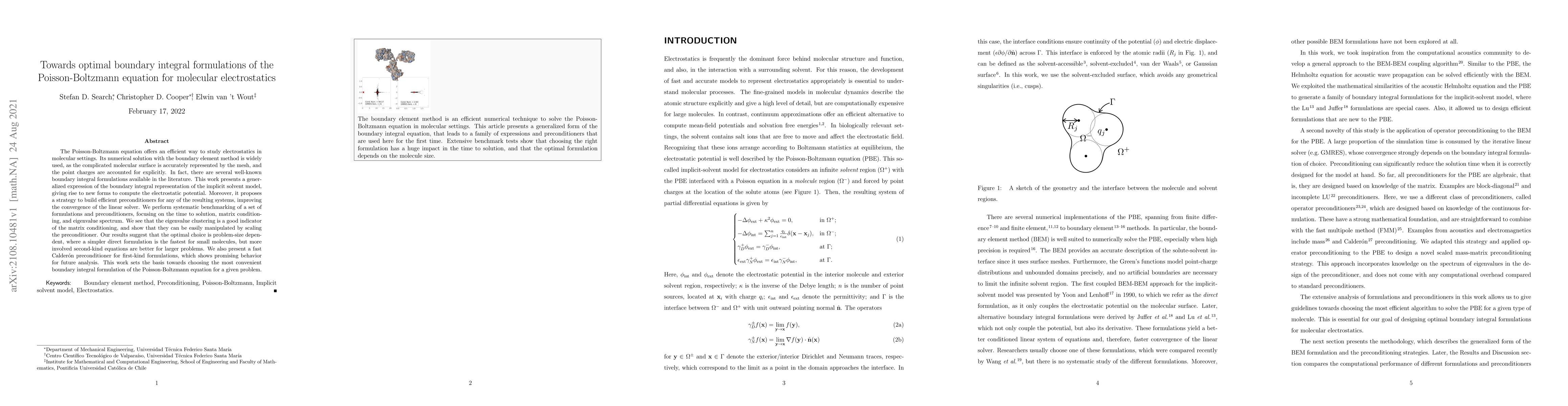 The work proposes a generalized expression of the boundary integral representation and a strategy to build efficient preconditioners, improving the convergence of the linear solver.