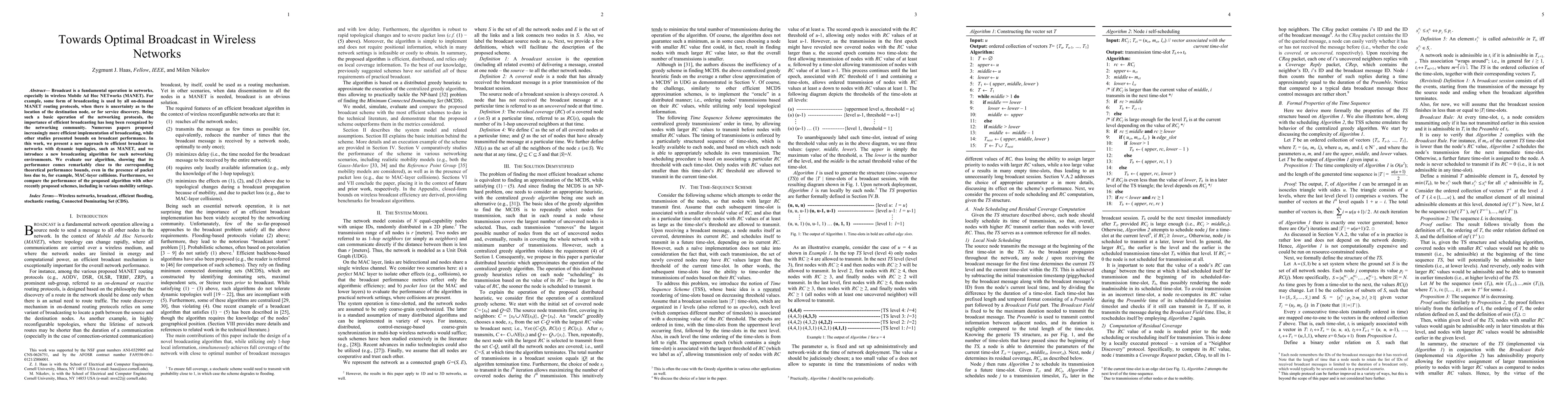 Broadcast is a fundamental operation in networks, especially in wireless Mobile Ad Hoc NETworks (MANET). For example, some form of broadcasting is used by all on-demand MANET routing protocols, when there is uncertainty as to the location of the destination node, or for service discovery. Being such a basic operation of the networking protocols, the importance of efficient broadcasting has long been recognized by the networking community. Numerous papers proposed increasingly more efficient implementation of broadcasting, while other studies presented bounds on broadcast performance. In this work, we present a new approach to efficient broadcast in networks with dynamic topologies, such as MANET, and we introduce a new broadcasting algorithm for such networking environments. We evaluate our algorithm, showing that its performance comes remarkably close to the corresponding theoretical performance bounds, even in the presence of packet loss due to, for example, MAC-layer collisions. Furthermore, we compare the performance of the proposed algorithm with other recently proposed schemes, including in various mobility settings.