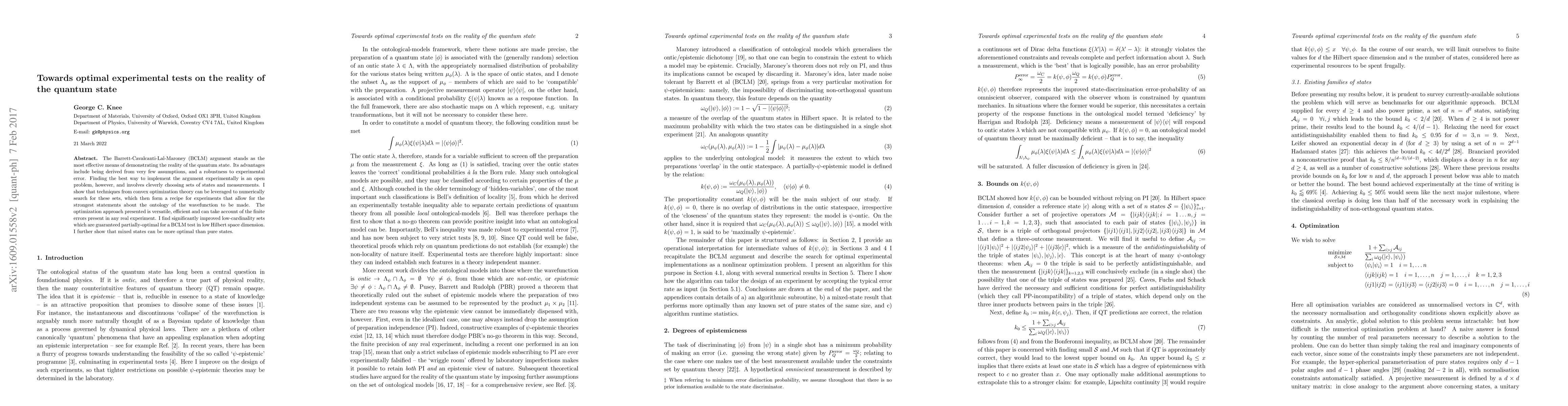 The Barrett-Cavalcanti-Lal-Maroney (BCLM) argument stands as the most effective means of demonstrating the reality of the quantum state. Its advantages include being derived from very few assumptions, and a robustness to experimental error. Finding the best way to implement the argument experimentally is an open problem, however, and involves cleverly choosing sets of states and measurements. I show that techniques from convex optimisation theory can be leveraged to numerically search for these sets, which then form a recipe for experiments that allow for the strongest statements about the ontology of the wavefunction to be made. The optimisation approach presented is versatile, efficient and can take account of the finite errors present in any real experiment. I find significantly improved low-cardinality sets which are guaranteed partially optimal for a BCLM test in low Hilbert space dimension. I further show that mixed states can be more optimal than pure states.
