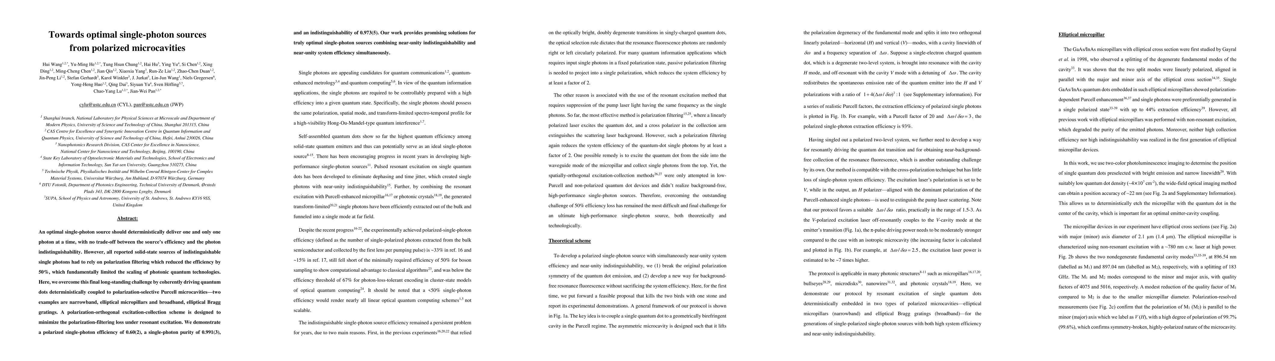 This paper presents an innovative approach to creating optimal single-photon sources using quantum dots coupled to polarization-selective Purcell microcavities, achieving near-unity efficiency and indistinguishability without the 50% efficiency loss from polarization filtering. The proposed method demonstrates high single-photon purity and indistinguishability, offering a promising solution for scalable photonic quantum technologies.