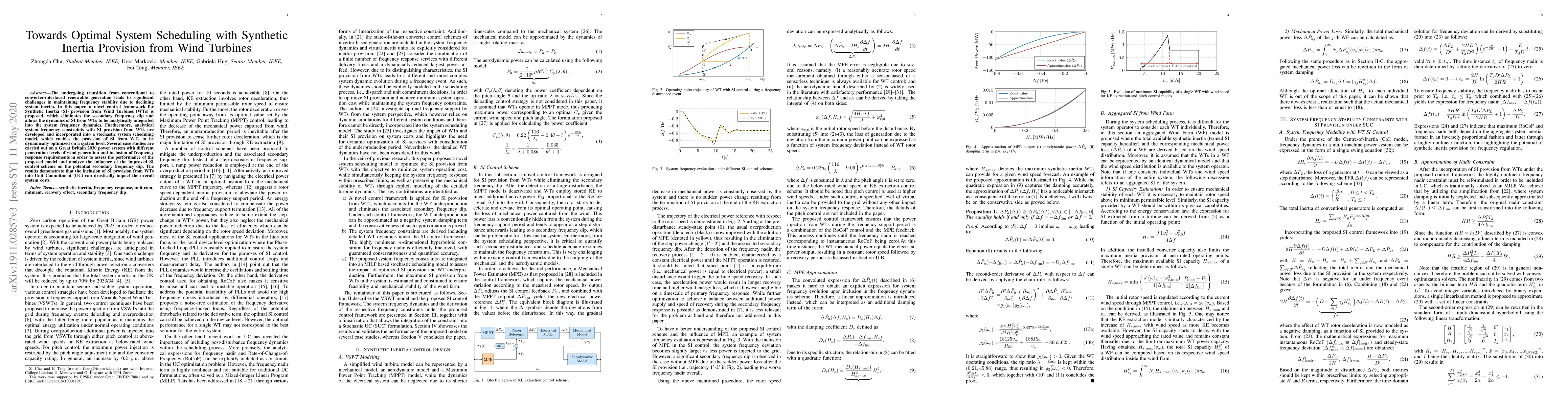 This paper proposes a novel control framework for Synthetic Inertia provision from Wind Turbines to maintain frequency stability in transitioning power systems, integrating SI dynamics analytically and optimizing its provision in a stochastic system scheduling model. Results show significant impacts on system costs and reduced secondary frequency dips with increased wind generation.
