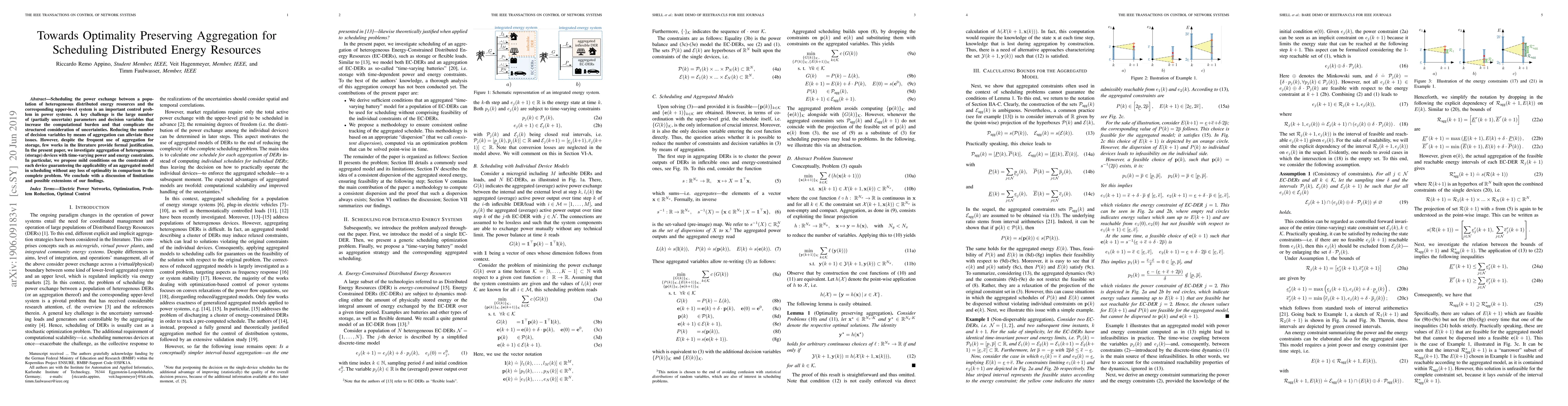 This paper proposes conditions for optimality-preserving aggregation in scheduling distributed energy resources, ensuring that aggregated models maintain the same optimality as the complete problem despite reduced decision variables. The study addresses the computational challenges posed by numerous parameters and uncertainties in power systems.