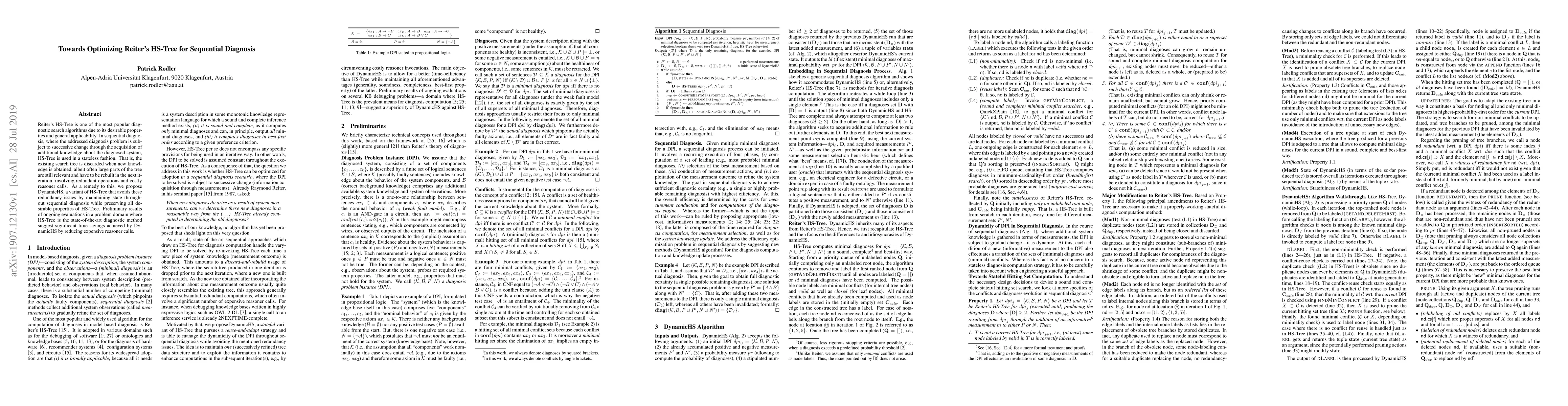 This paper proposes DynamicHS, a variant of Reiter's HS-Tree, to optimize sequential diagnosis by maintaining state and avoiding redundant operations. Preliminary results indicate significant time savings by reducing costly reasoner calls.