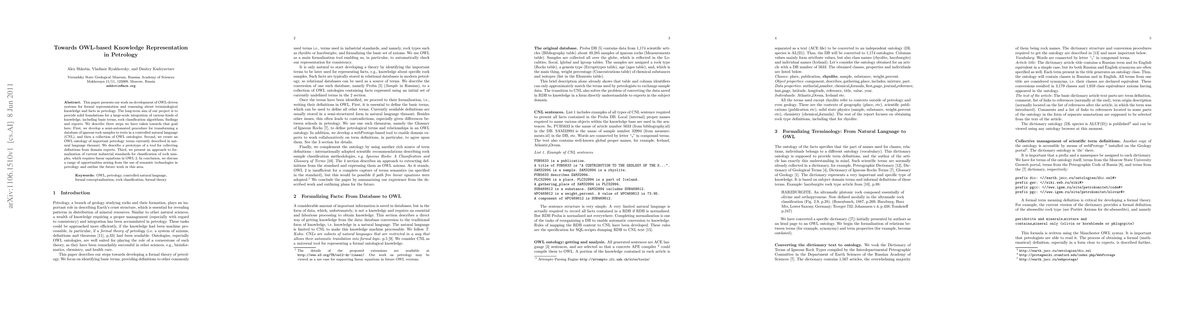 Researchers developed an OWL-based framework for formalizing petrology knowledge, transforming rock sample databases to controlled natural language, and creating a thesaurus of petrology terms. The project aims to integrate various types of knowledge in petrology using semantic technologies.