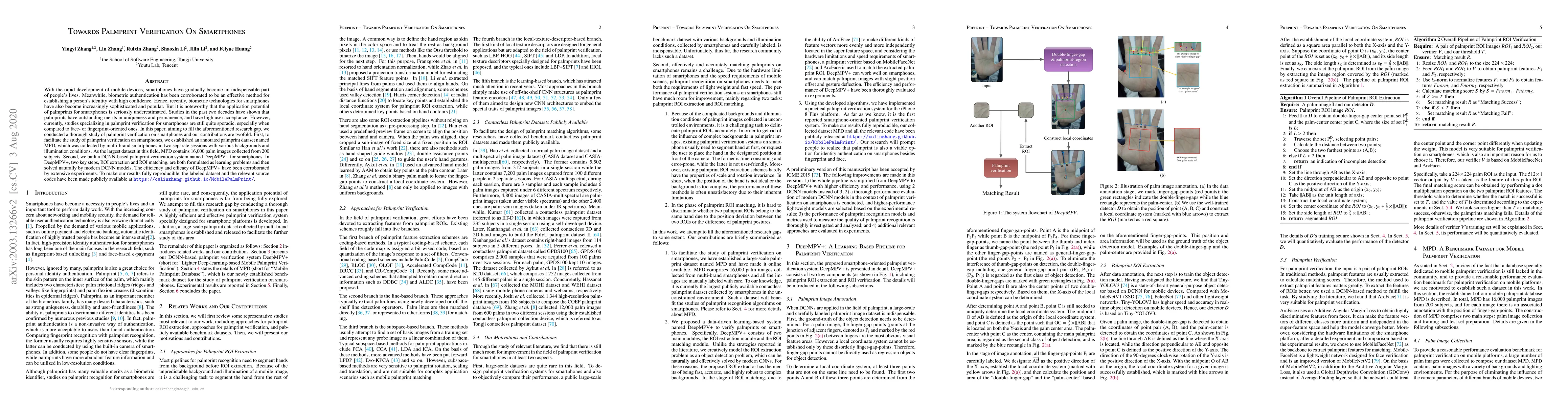 This study investigates palmprint verification on smartphones, establishing a large dataset and a deep learning-based system for efficient authentication, which fills the existing research gap in this area.
