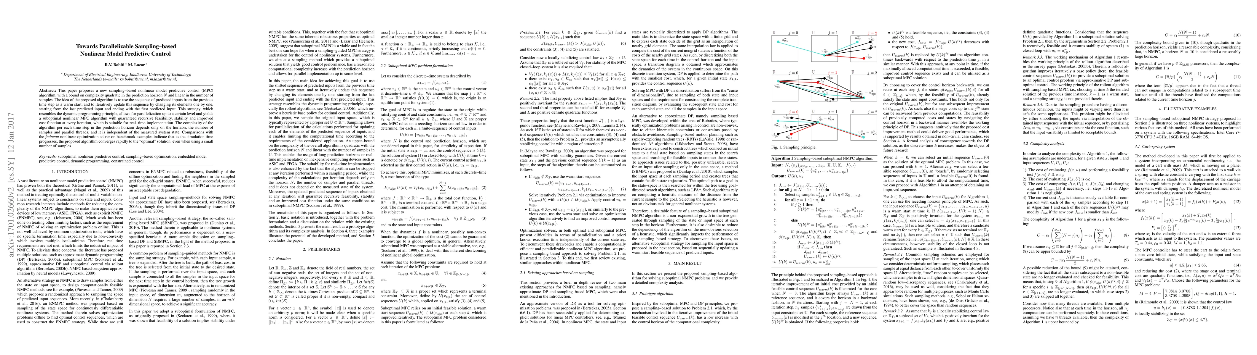 A new sampling-based nonlinear model predictive control algorithm is proposed, offering parallelization up to a certain level with guaranteed recursive feasibility and stability. The algorithm converges rapidly to optimal solutions even with limited samples.