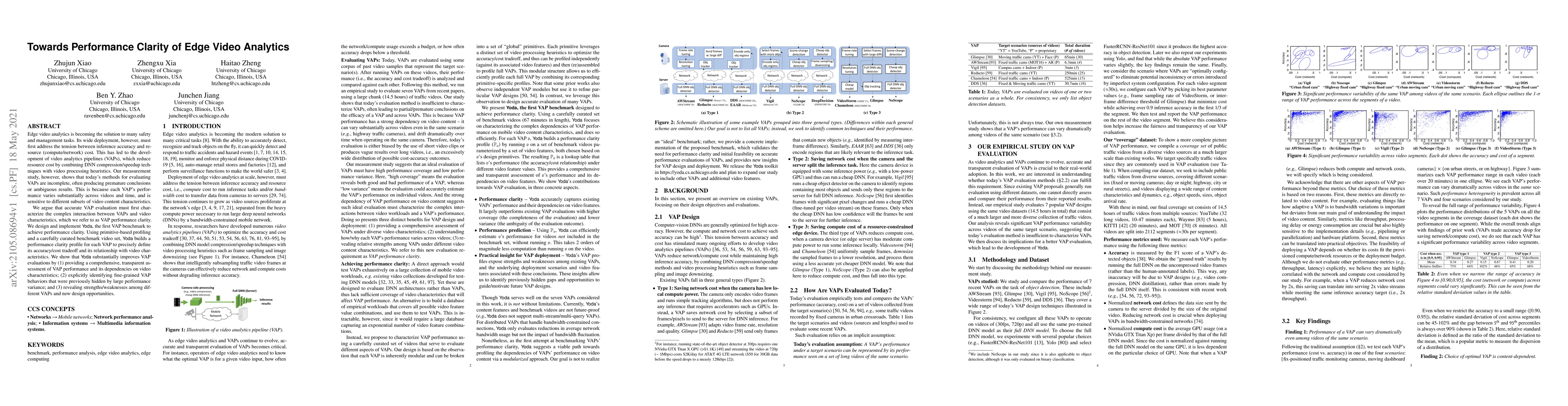 This paper discusses the challenges in evaluating edge video analytics pipelines (VAPs) due to their varying performance across different videos and time. It introduces Yoda, a new benchmark designed to achieve performance clarity by characterizing the interaction between VAPs and video characteristics, thereby providing a comprehensive and transparent assessment of VAP performance and revealing hidden behaviors and design opportunities.