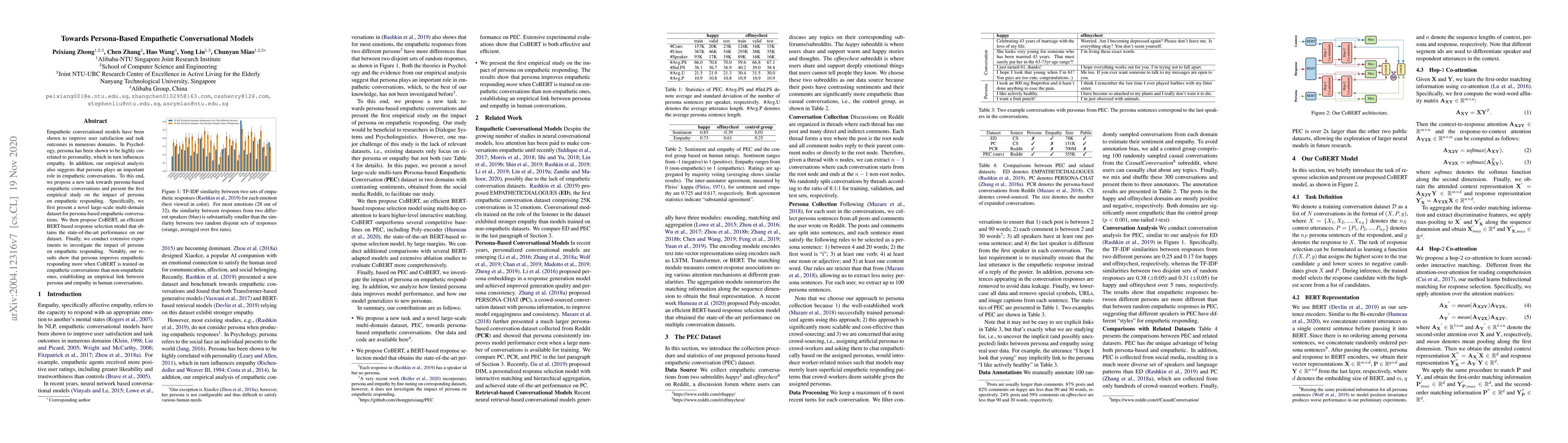 This paper proposes a new task for persona-based empathetic conversational models, introducing CoBERT, a BERT-based response selection model. The study finds that persona significantly enhances empathetic responding, especially when the model is trained on empathetic conversations.