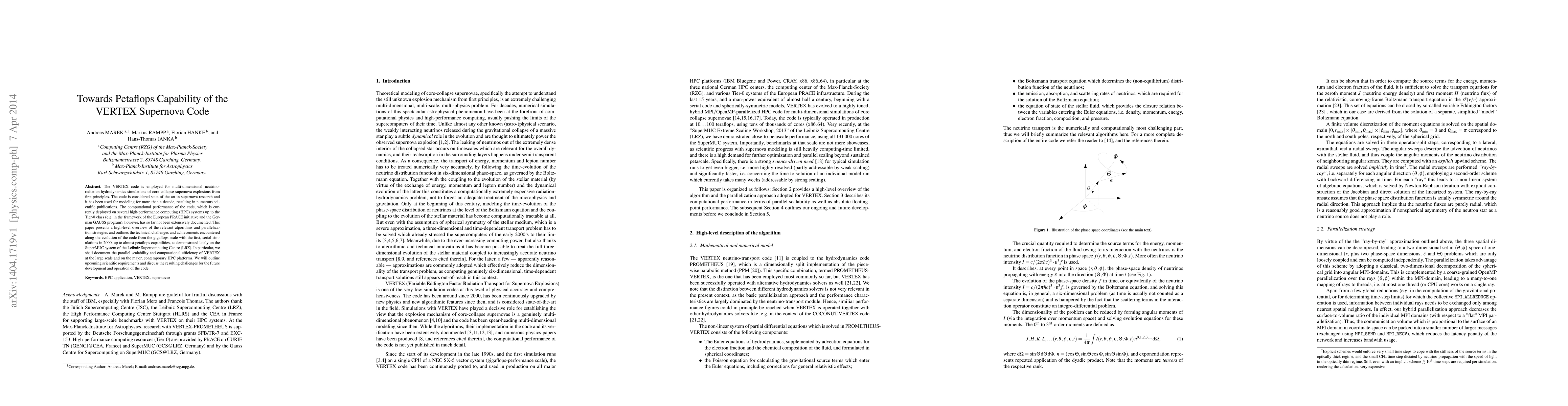 The VERTEX code is employed for multi-dimensional neutrino-radiation hydrodynamics simulations of core-collapse supernova explosions from first principles. The code is considered state-of-the-art in supernova research and it has been used for modeling for more than a decade, resulting in numerous scientific publications. The computational performance of the code, which is currently deployed on several high-performance computing (HPC) systems up to the Tier-0 class (e.g. in the framework of the European PRACE initiative and the German GAUSS program), however, has so far not been extensively documented. This paper presents a high-level overview of the relevant algorithms and parallelization strategies and outlines the technical challenges and achievements encountered along the evolution of the code from the gigaflops scale with the first, serial simulations in 2000, up to almost petaflops capabilities, as demonstrated lately on the SuperMUC system of the Leibniz Supercomputing Centre (LRZ). In particular, we shall document the parallel scalability and computational efficiency of VERTEX at the large scale and on the major, contemporary HPC platforms. We will outline upcoming scientific requirements and discuss the resulting challenges for the future development and operation of the code.