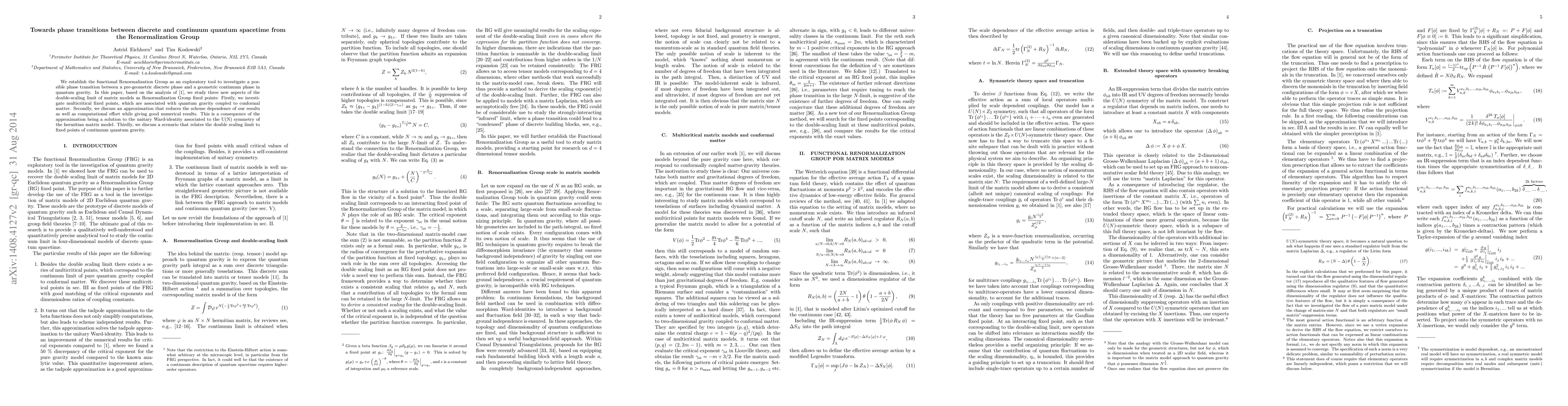 This paper uses the functional Renormalization Group to explore a phase transition in quantum gravity from a discrete pre-geometric phase to a geometric continuum phase. It investigates multicritical fixed points, introduces an approximation to reduce scheme dependence and computational effort, and relates the double-scaling limit to continuum quantum gravity fixed points.