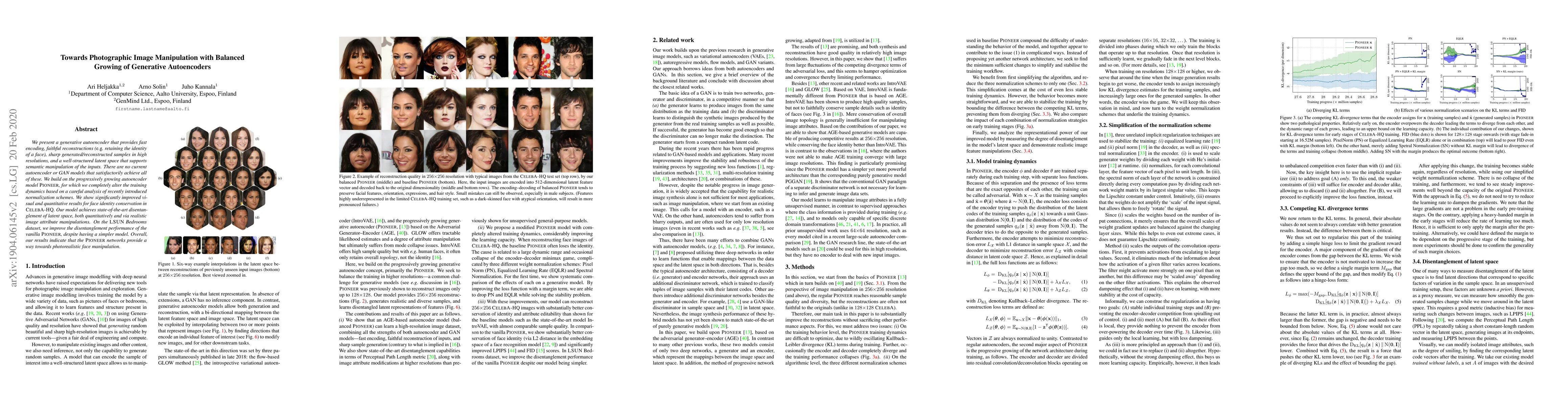 We present a generative autoencoder that provides fast encoding, faithful reconstructions (eg. retaining the identity of a face), sharp generated/reconstructed samples in high resolutions, and a well-structured latent space that supports semantic manipulation of the inputs. There are no current autoencoder or GAN models that satisfactorily achieve all of these. We build on the progressively growing autoencoder model PIONEER, for which we completely alter the training dynamics based on a careful analysis of recently introduced normalization schemes. We show significantly improved visual and quantitative results for face identity conservation in CelebAHQ. Our model achieves state-of-the-art disentanglement of latent space, both quantitatively and via realistic image attribute manipulations. On the LSUN Bedrooms dataset, we improve the disentanglement performance of the vanilla PIONEER, despite having a simpler model. Overall, our results indicate that the PIONEER networks provide a way towards photorealistic face manipulation.