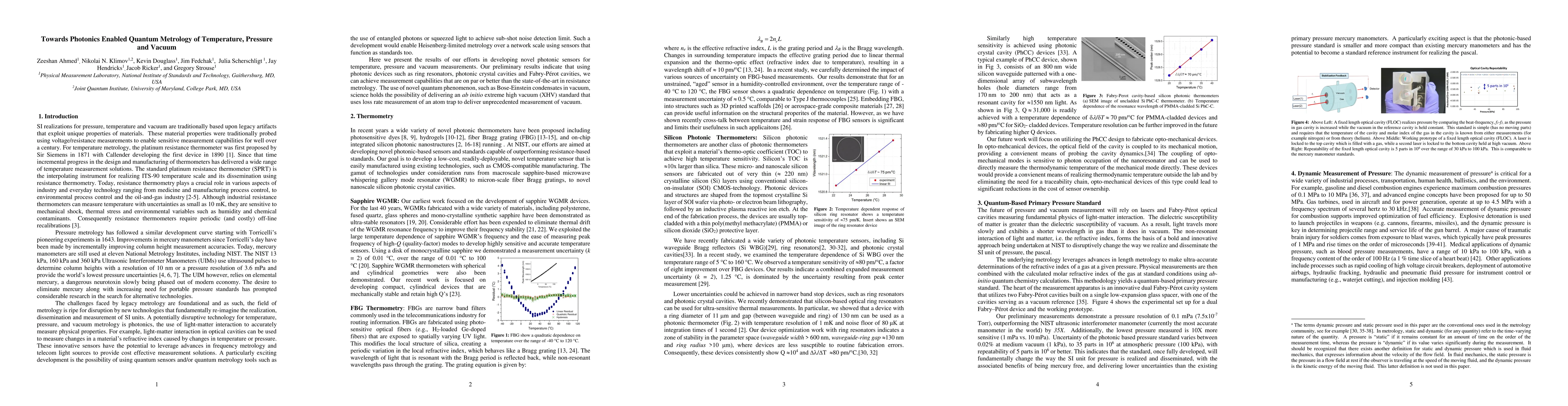 This chapter presents a brief overview of photonic sensor and standards development that is currently undergoing in the thermodynamic metrology group at NIST in the areas of temperature, pressure, vacuum and time-resolved pressure measurements.