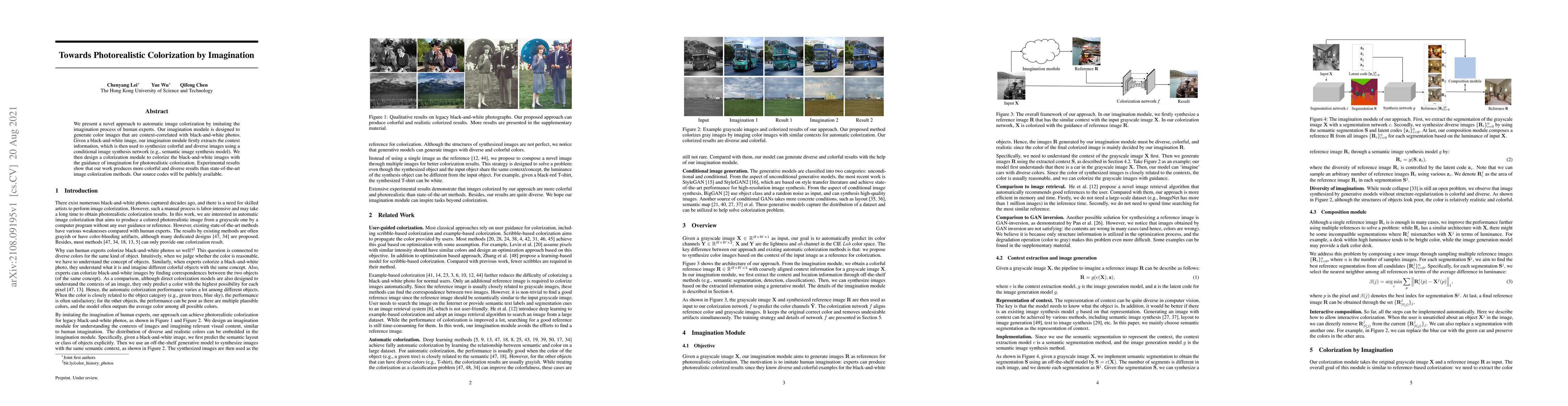 This paper introduces a novel approach to colorizing black-and-white images with photorealistic colors by mimicking human imagination, outperforming existing methods in terms of diversity and quality.