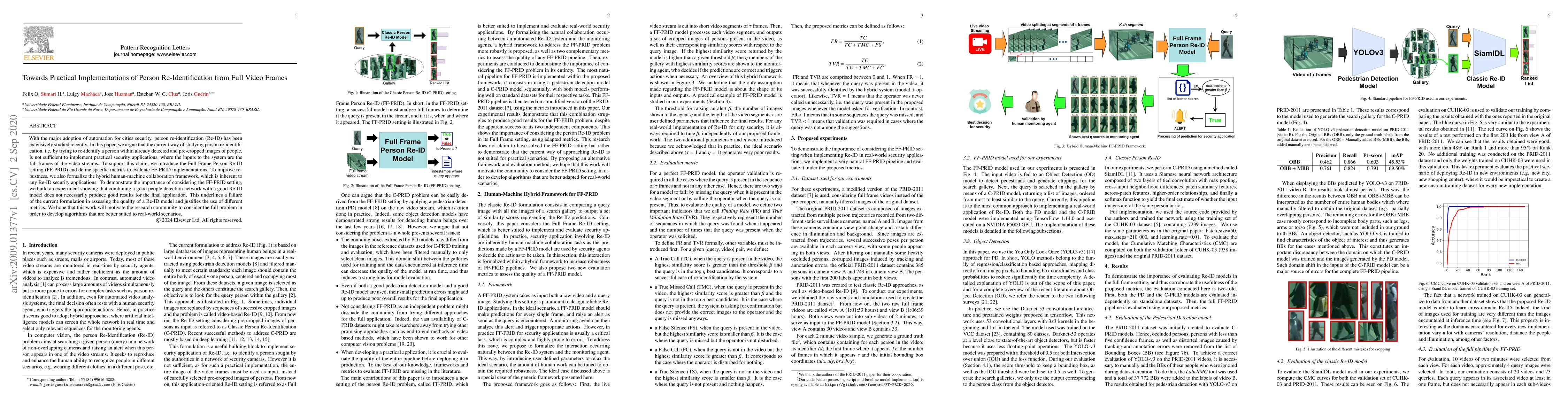 With the major adoption of automation for cities security, person re-identification (Re-ID) has been extensively studied recently. In this paper, we argue that the current way of studying person re-identification, i.e. by trying to re-identify a person within already detected and pre-cropped images of people, is not sufficient to implement practical security applications, where the inputs to the system are the full frames of the video streams. To support this claim, we introduce the Full Frame Person Re-ID setting (FF-PRID) and define specific metrics to evaluate FF-PRID implementations. To improve robustness, we also formalize the hybrid human-machine collaboration framework, which is inherent to any Re-ID security applications. To demonstrate the importance of considering the FF-PRID setting, we build an experiment showing that combining a good people detection network with a good Re-ID model does not necessarily produce good results for the final application. This underlines a failure of the current formulation in assessing the quality of a Re-ID model and justifies the use of different metrics. We hope that this work will motivate the research community to consider the full problem in order to develop algorithms that are better suited to real-world scenarios.