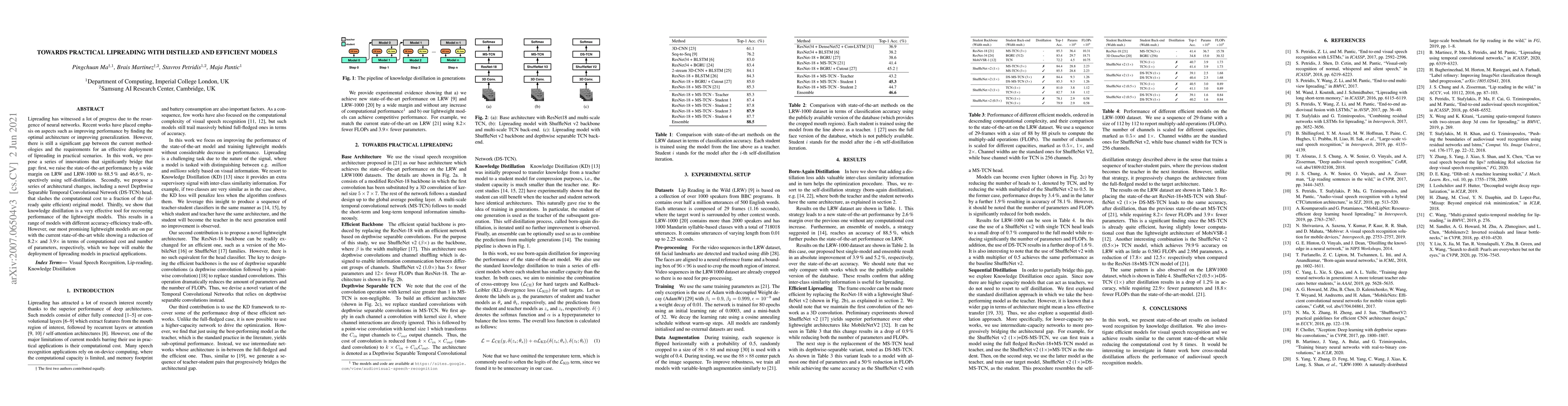 Lipreading has witnessed a lot of progress due to the resurgence of neural networks. Recent works have placed emphasis on aspects such as improving performance by finding the optimal architecture or improving generalization. However, there is still a significant gap between the current methodologies and the requirements for an effective deployment of lipreading in practical scenarios. In this work, we propose a series of innovations that significantly bridge that gap: first, we raise the state-of-the-art performance by a wide margin on LRW and LRW-1000 to 88.5% and 46.6%, respectively using self-distillation. Secondly, we propose a series of architectural changes, including a novel Depthwise Separable Temporal Convolutional Network (DS-TCN) head, that slashes the computational cost to a fraction of the (already quite efficient) original model. Thirdly, we show that knowledge distillation is a very effective tool for recovering performance of the lightweight models. This results in a range of models with different accuracy-efficiency trade-offs. However, our most promising lightweight models are on par with the current state-of-the-art while showing a reduction of 8.2x and 3.9x in terms of computational cost and number of parameters, respectively, which we hope will enable the deployment of lipreading models in practical applications.