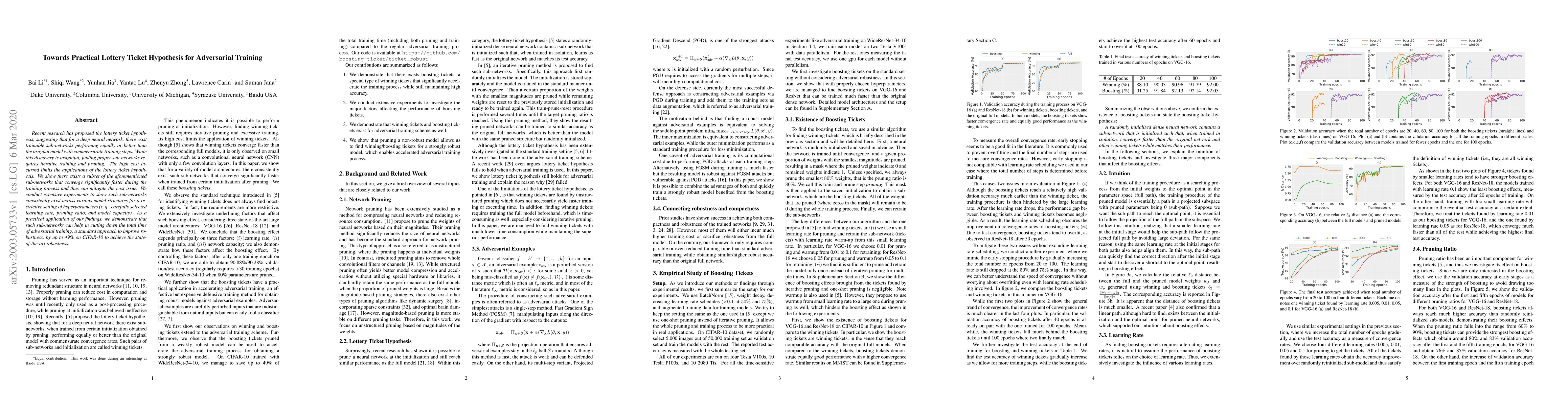Recent research has proposed the lottery ticket hypothesis, suggesting that for a deep neural network, there exist trainable sub-networks performing equally or better than the original model with commensurate training steps. While this discovery is insightful, finding proper sub-networks requires iterative training and pruning. The high cost incurred limits the applications of the lottery ticket hypothesis. We show there exists a subset of the aforementioned sub-networks that converge significantly faster during the training process and thus can mitigate the cost issue. We conduct extensive experiments to show such sub-networks consistently exist across various model structures for a restrictive setting of hyperparameters ($e.g.$, carefully selected learning rate, pruning ratio, and model capacity). As a practical application of our findings, we demonstrate that such sub-networks can help in cutting down the total time of adversarial training, a standard approach to improve robustness, by up to 49\% on CIFAR-10 to achieve the state-of-the-art robustness.