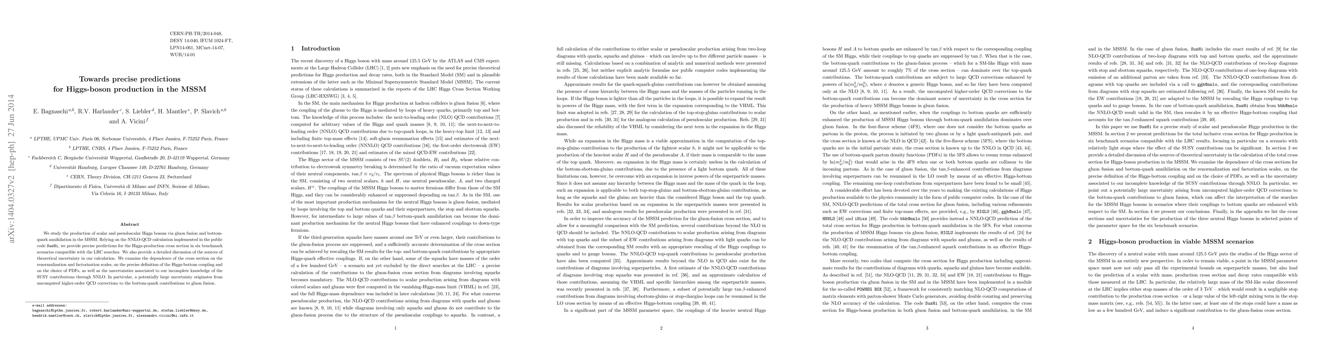 This paper presents precise predictions for Higgs-boson production in the MSSM via gluon fusion and bottom-quark annihilation using NNLO-QCD calculations. It discusses theoretical uncertainties, including scale dependence and the impact of SUSY contributions, highlighting a significant uncertainty from uncomputed higher-order QCD corrections.